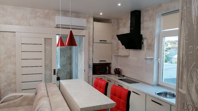 В квартире имеется все необходимое для комфортного отдыха, сплит–система, хорошие новые спальные места (два дивана), большая комната в виде студии и отдельная уютная спальня.