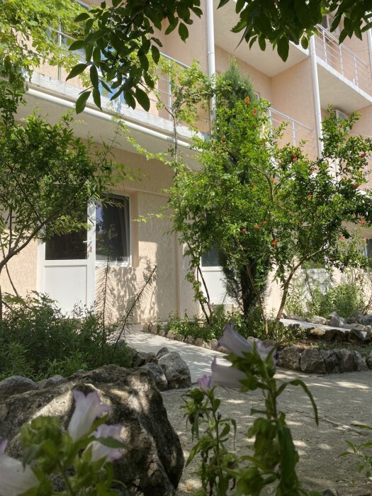 Мы предлагаем номера разной вместимости. В просторных комнатах имеется санузел (горячая и холодная вода круглосуточно), фен, LCD телевизор, кондиционер, холодильник, функциональная мебель, посуда, Wi-Fi на всей территории. С балконов верхнего этажа открывается приятная панорама открытого моря и Севастопольской бухты, можно принимать солнечные ванны и любоваться романтическими закатами. В распоряжении гостей: зелёная территория, беседки, зона барбекю. Детей порадует батут, песочница с игрушками, качели и горка для малышей.