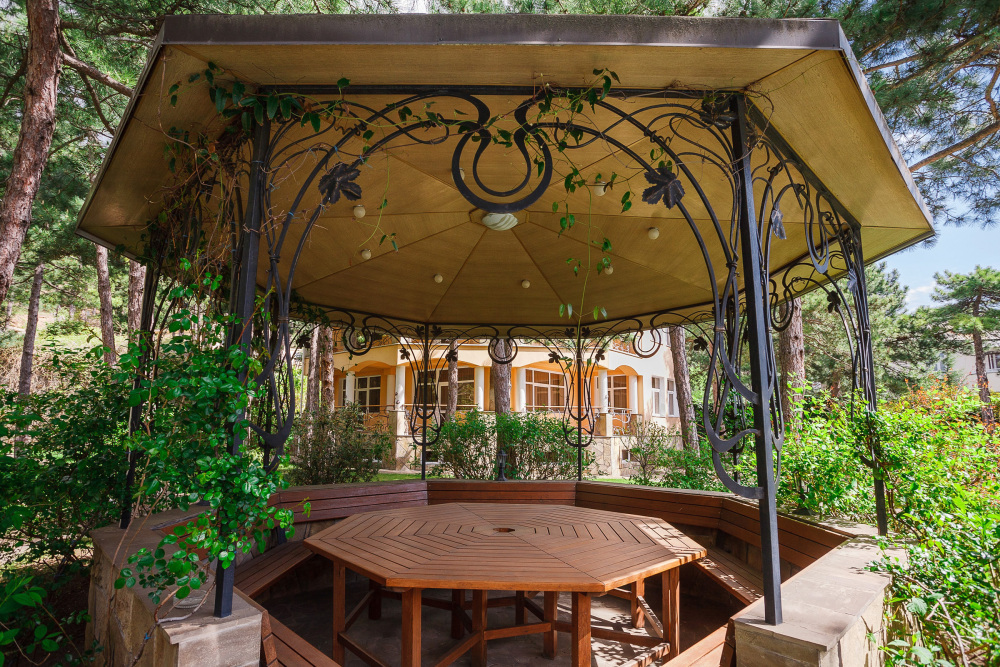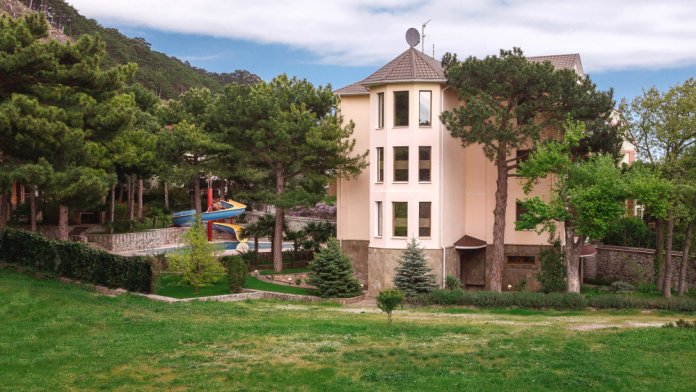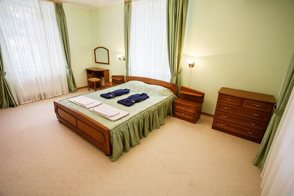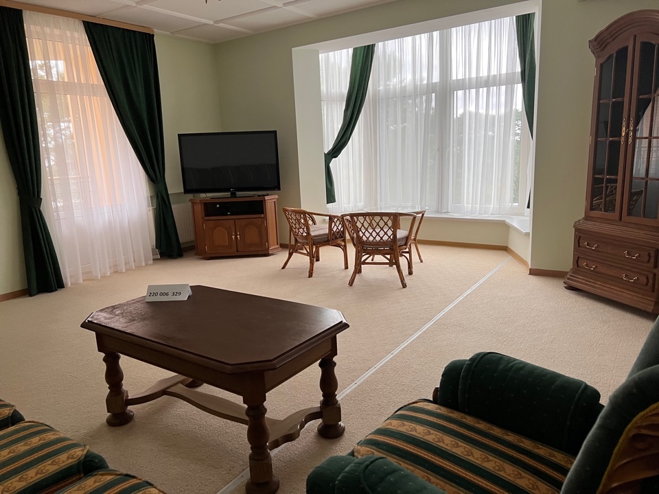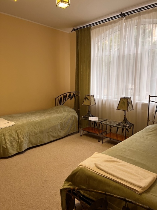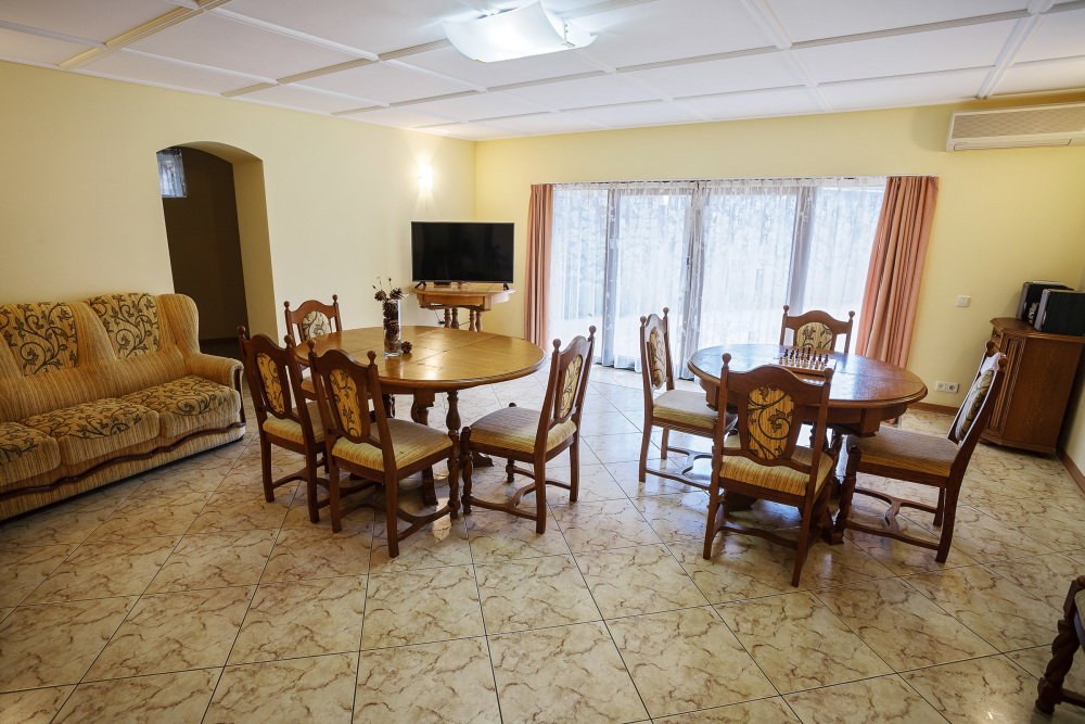 Максимальное количество гостей на вилле - 12 человек, дополнительно в залах расположены 2-х местные раскладные диваны. Вилла состоит из 3-х жилых этажей, каждый из которых располагает 2 спальнями с собственными санузлами, гостиной с плоским телевизором и раскладным диваном.