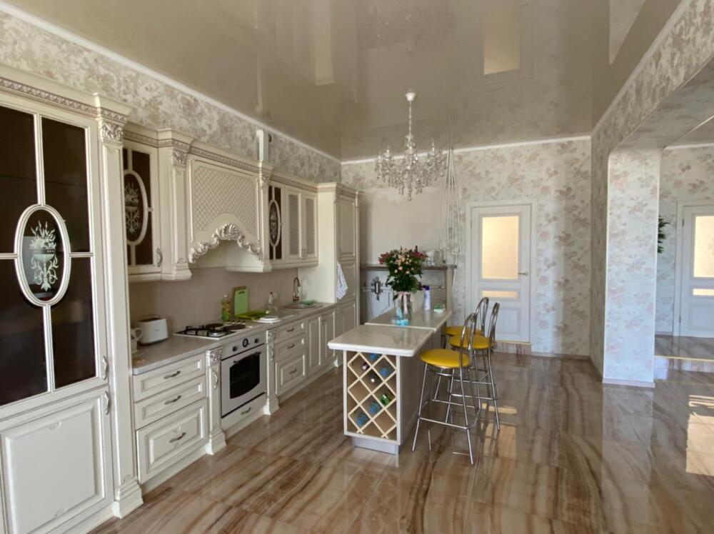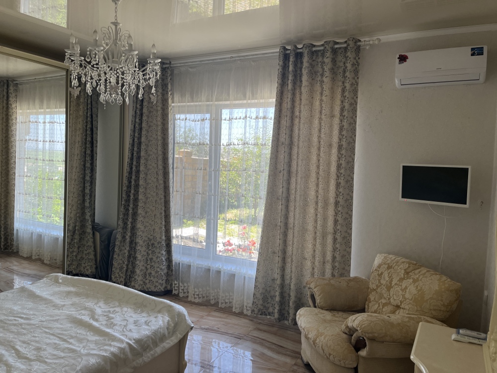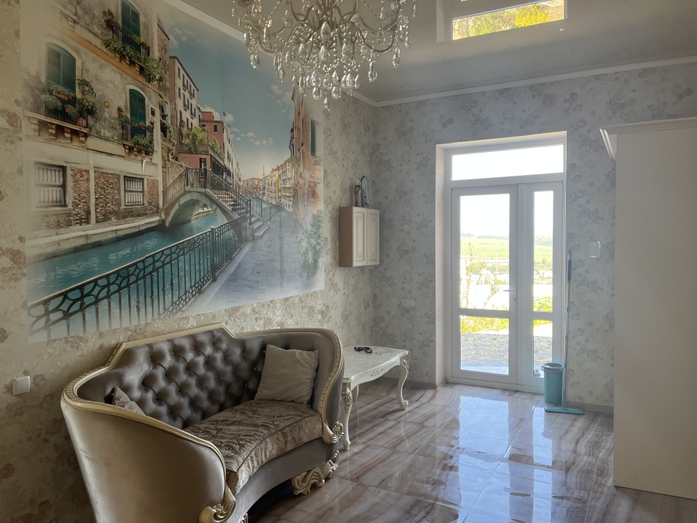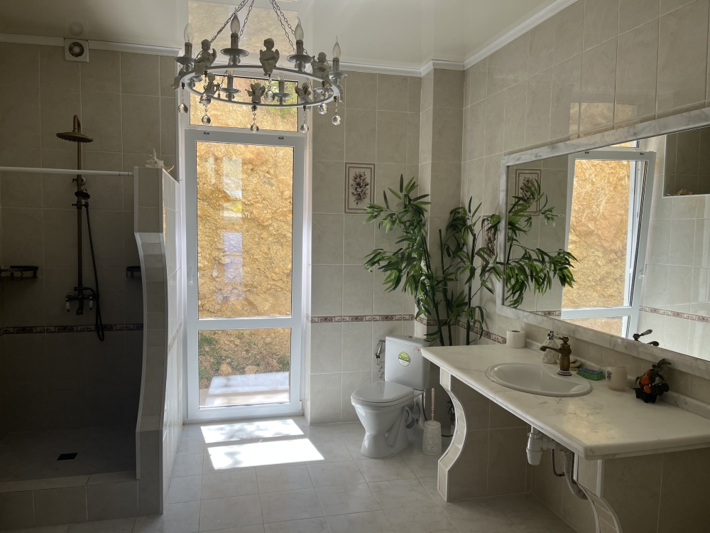 Теплоузел 30 кв.м, летний домик 12 кв.м., 2 террасы по 30 кв.м. На 2 этаже живет семья. На этаже 3 больших спальни (видовые спальни кухня), санузел 25 кв.м., кухня-Студия 70 кв м., просторный холл, 36 кв.м терраса, хозблок. Вся бытовая техника, новая, стиральная машина, телевизор. Ремонт новый. Огромное и безусловное преимущество - вид на город, виноградники и горы. Климатическая система, тёплый пол. Мебель в классическом стиле, новая из массива. Бронзовая сантехника, гигиенический душ, проведен интернет. Охрана пульт. Видеонаблюдение. Водяное отопление (электро) и кондиционеры.