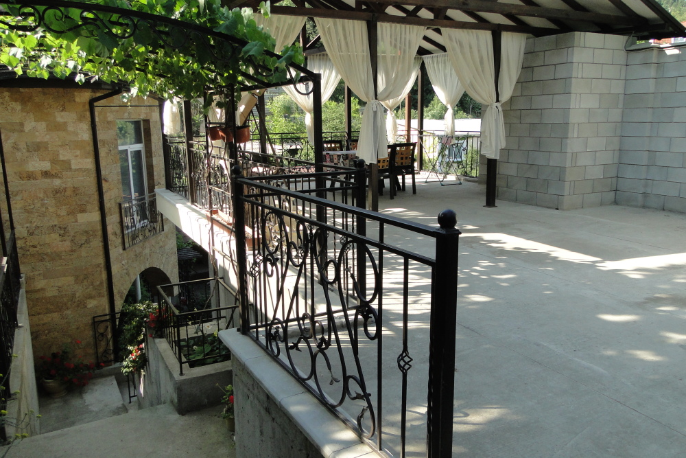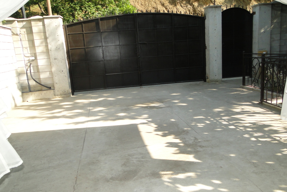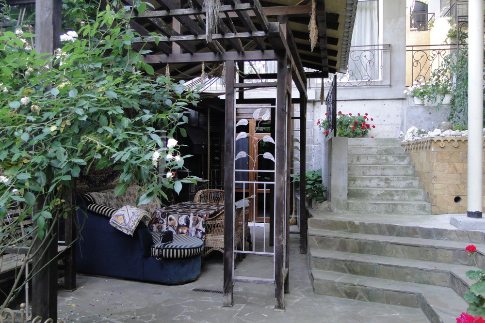 Отдельный огороженный двор, беседка, мягкий уголок, обеденный стол, мангал.
