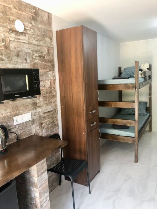 В номерах имеется все необходимое для удобного комфортного отдыха: кондиционер, холодильник, микроволновая печь, электрочайник, телевизор. Закрытая зелёная территория, беседки, мангал. WI-FI. Парковка на преддомовой территории, Игрушки и настольные игры для детей.