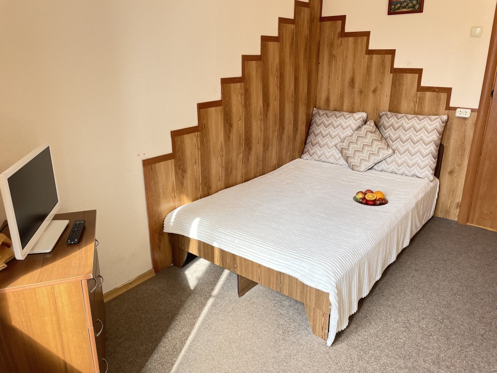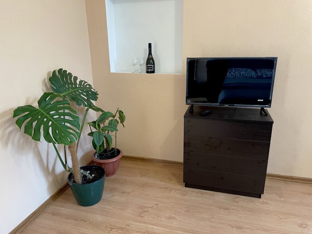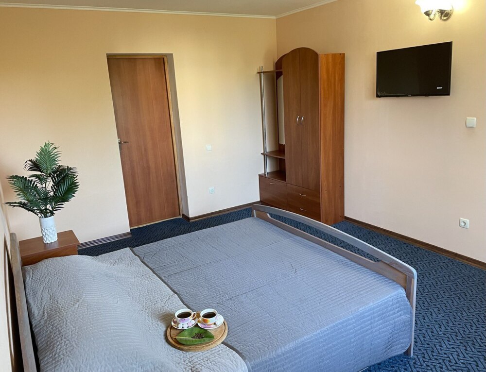 В номере телевизор SmartTV, кондиционер, холодильник, WiFi, шкаф для одежды, комод, стол, 2 стула.