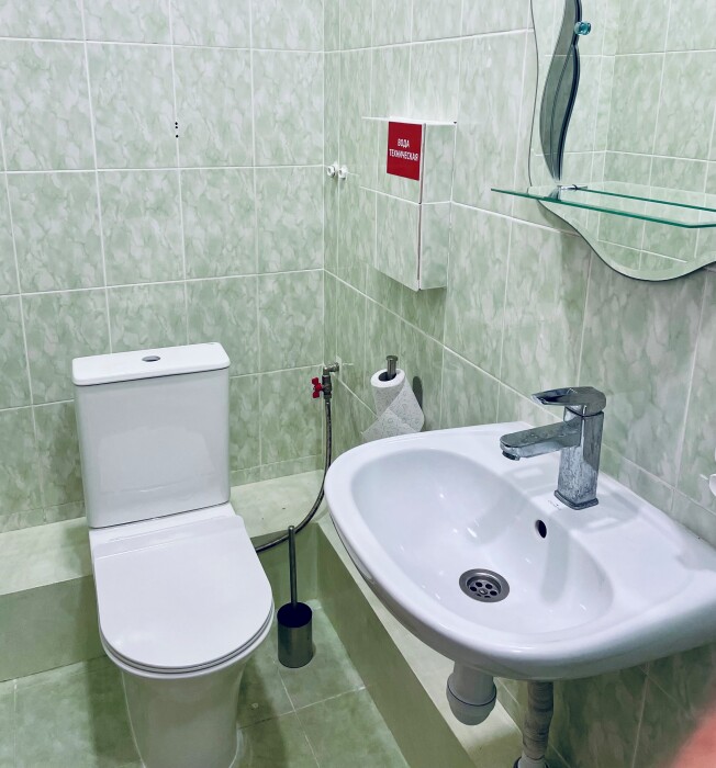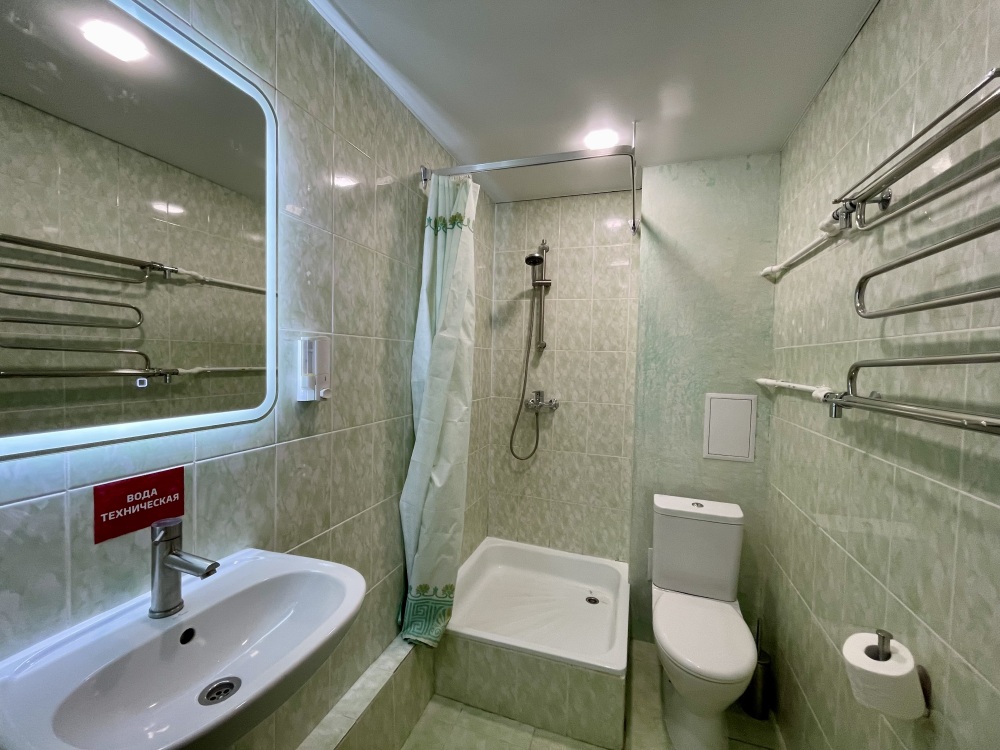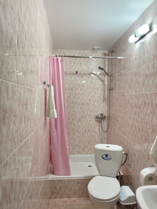 Во всех номерах есть свой санузел с душем и туалетом. Горячая вода.