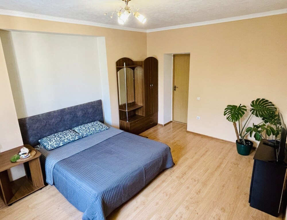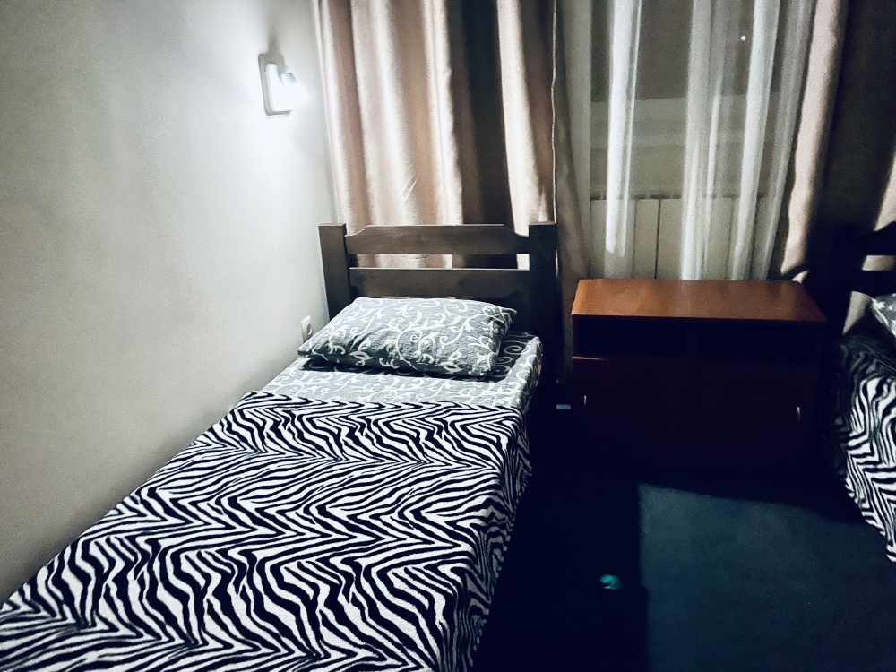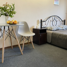 Уютный 1-местный номер с видом на город. Широкая кровать. В номере телевизор SmartTV, WiFi, кондиционер, комод. По запросу - фен. Санузел с туалетом и душевой кабиной,