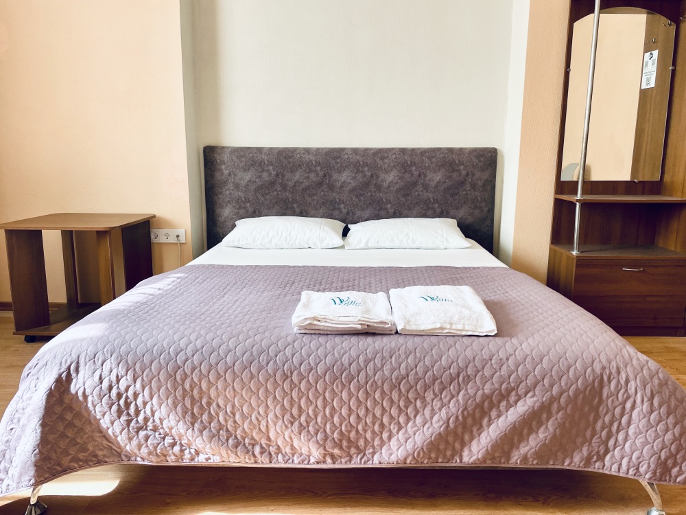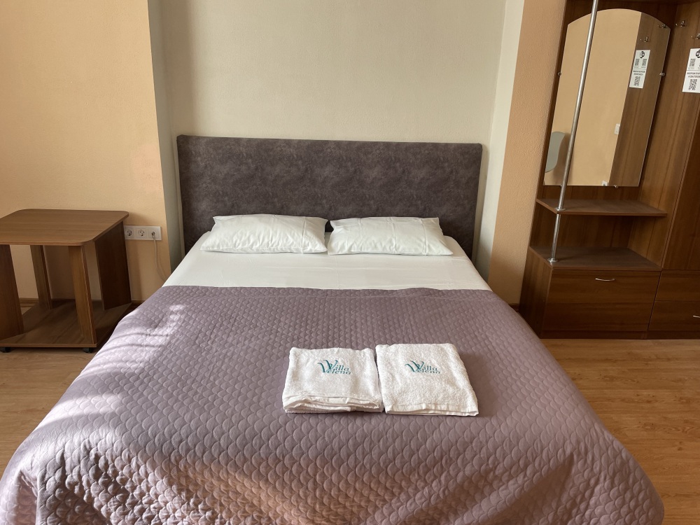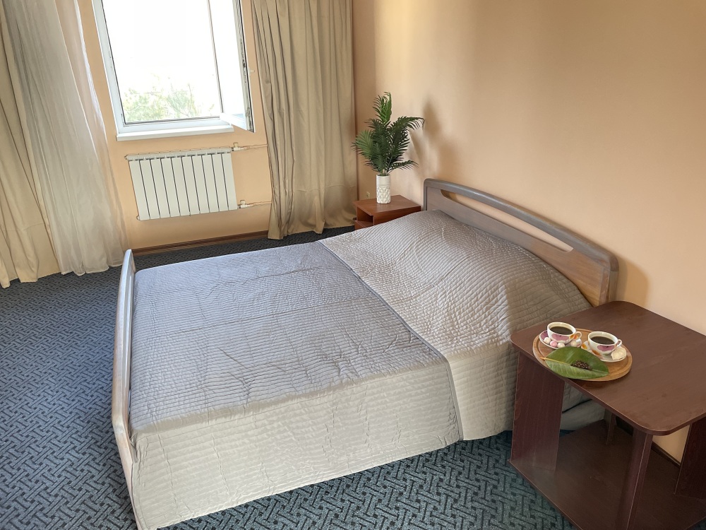 Уютный 2-местный номер с видом на город. Широкая 2-спальная кровать.