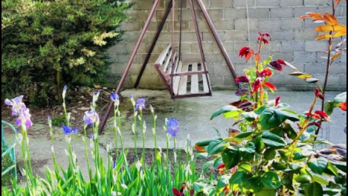 В уютном закрытом дворе есть беседка, зона барбекю со всеми необходимыми принадлежностями и дровами, качели.