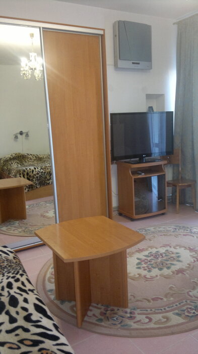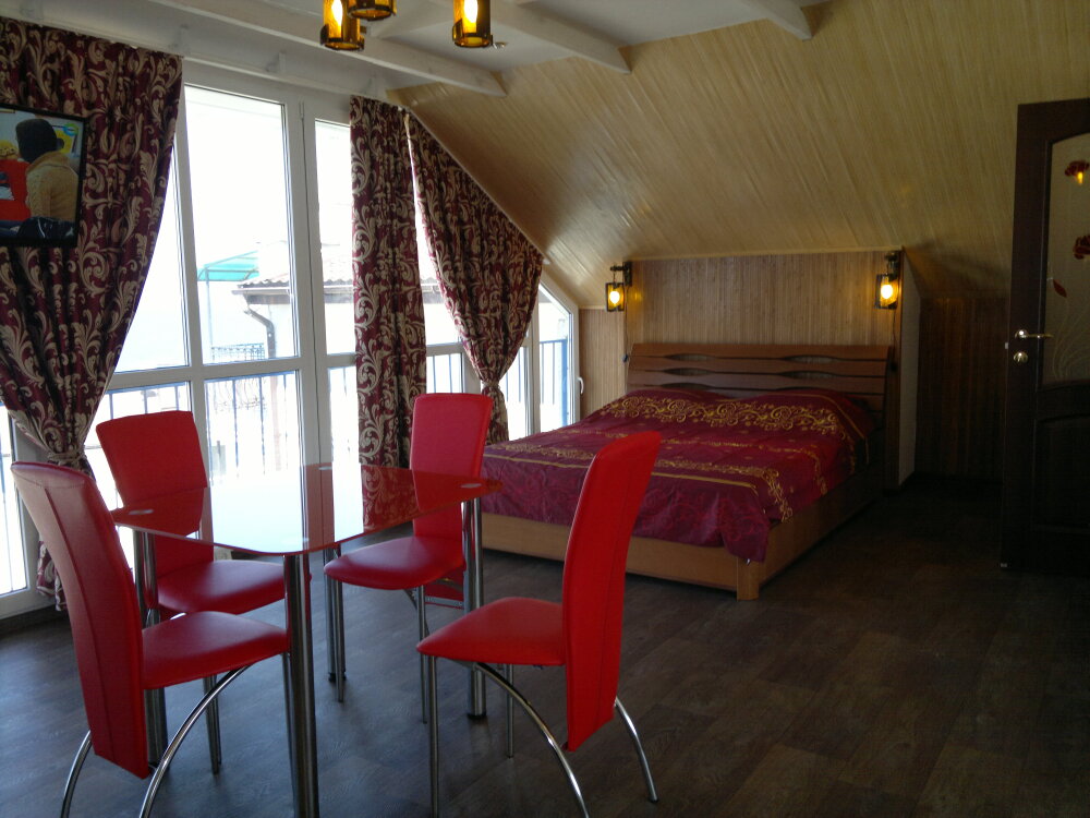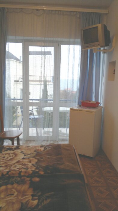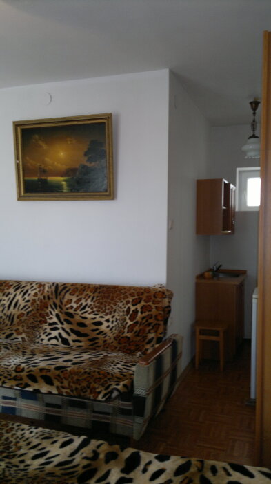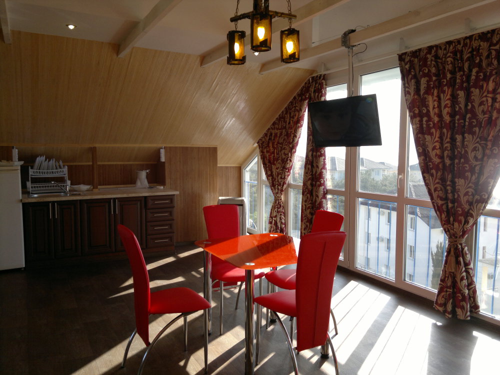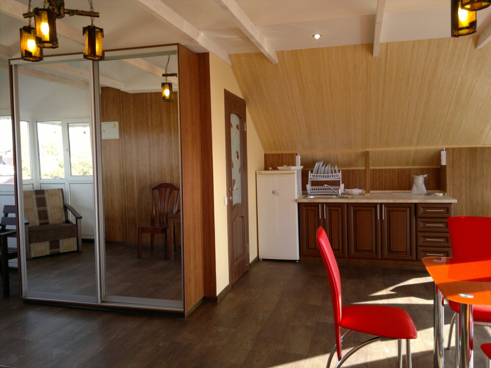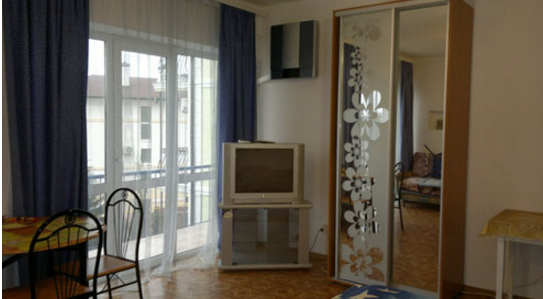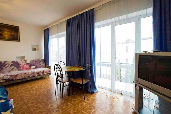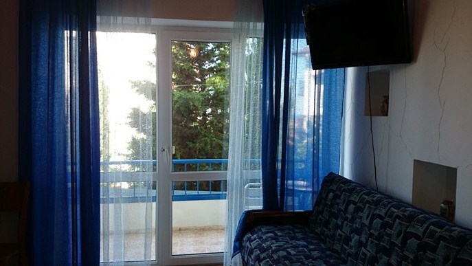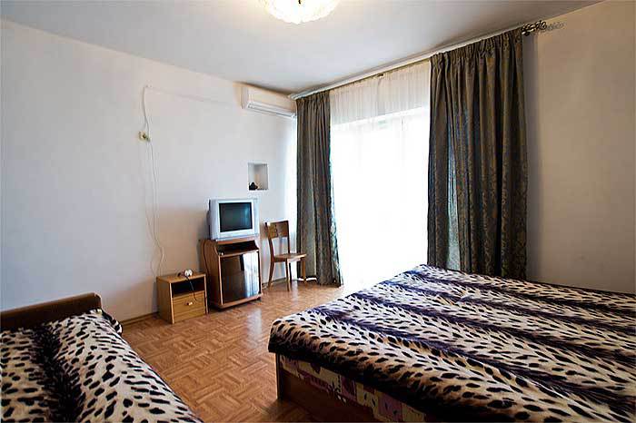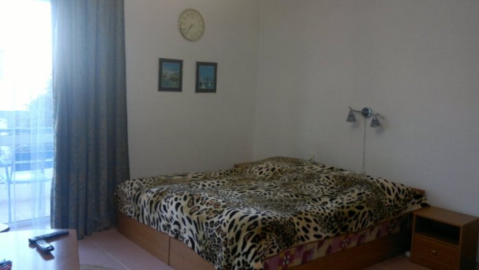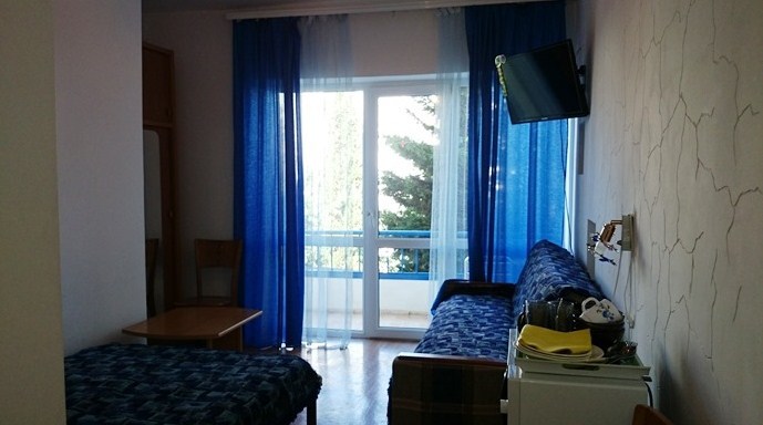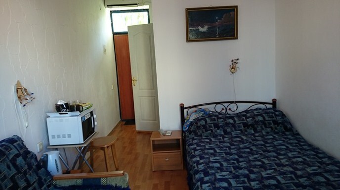 Спальные места: полутороспальная кровать, раскладной диван может быть использован, как дополнительное место. В номере телевизор, электрочайник, СВЧ-печь, холодильник, кондиционер, удобства (туалет, душ, умывальник), балкон-лоджия, красивый вид на море. Горячая вода из бойлера и солнечной батареи.