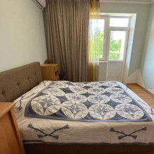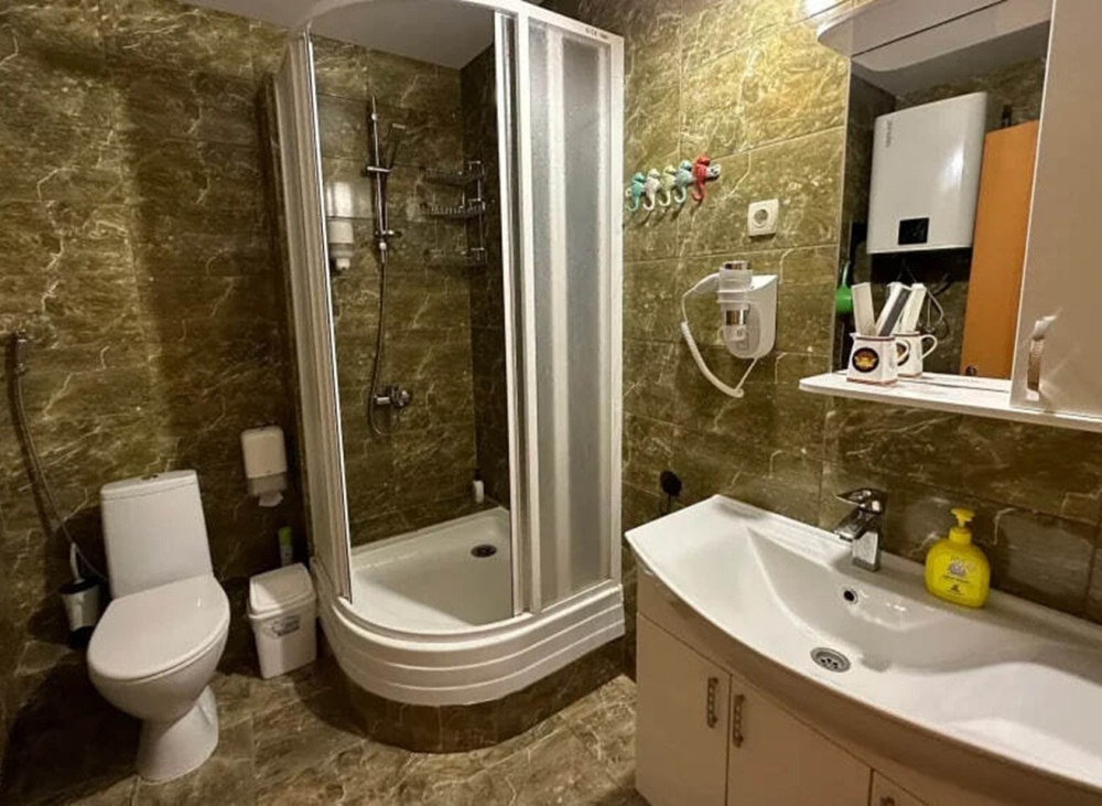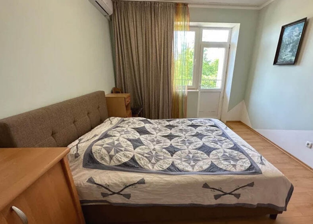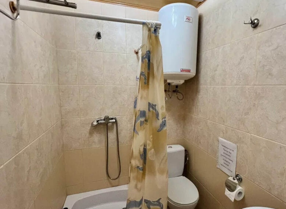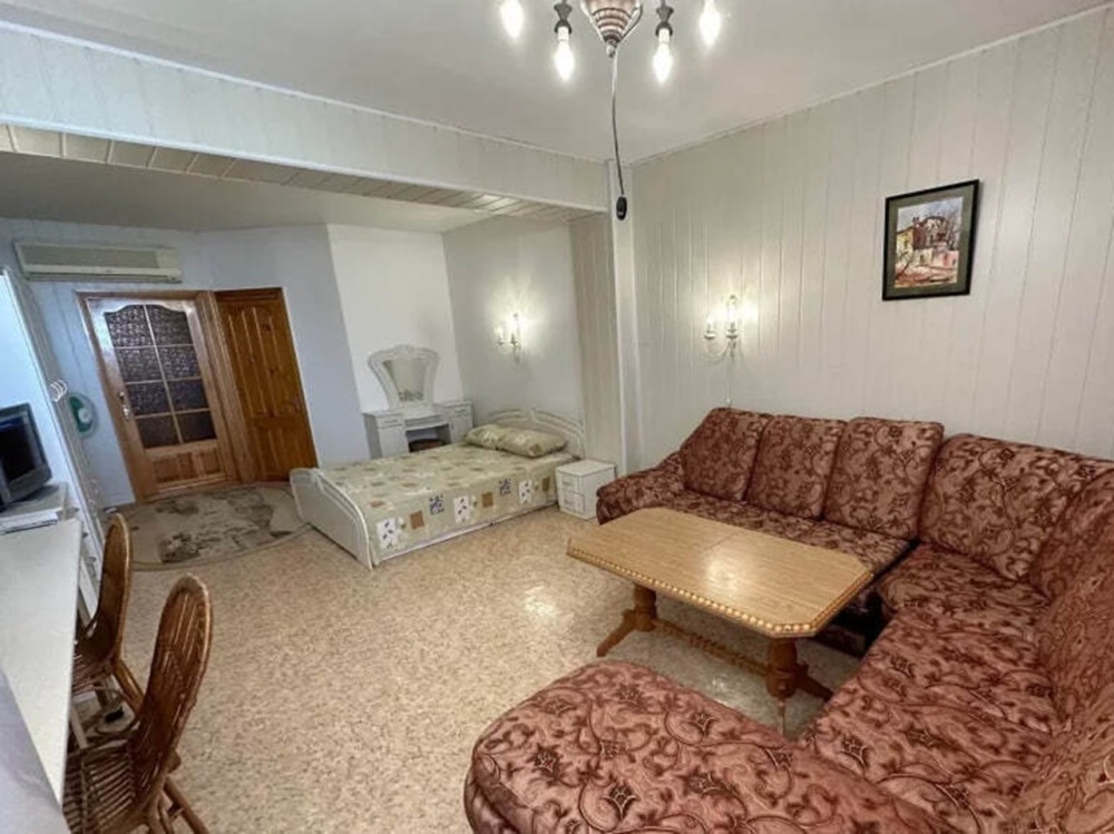 Двухкомнатный двухместный номер, площадью 33 кв.м. Номер находится на 2-м этаже. В номере есть: кондиционер, холодильник, телевизор. На балконе расположена кухня, с необходимой посудой для приёма и приготовления пищи. Также в номере есть с/у (душ, туалет), горячая и холодная воды круглосуточно. Кровать (спальное место 160 см), раскладной диван. С балкона номера открывается вид на город. Номер предназначен для 2 человек, с возможностью размещения 1 человека на доп. месте