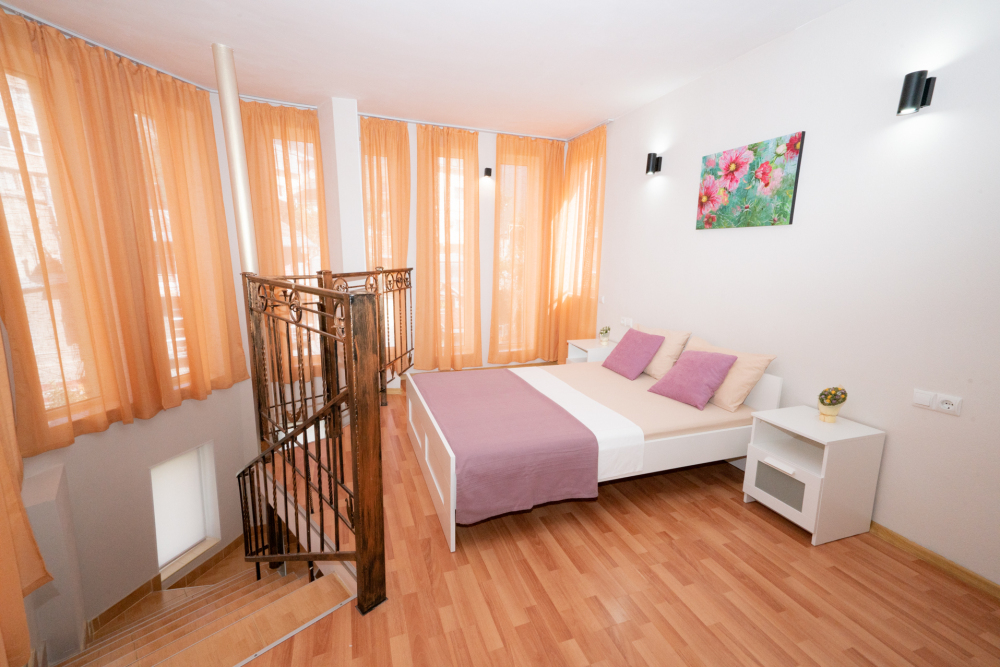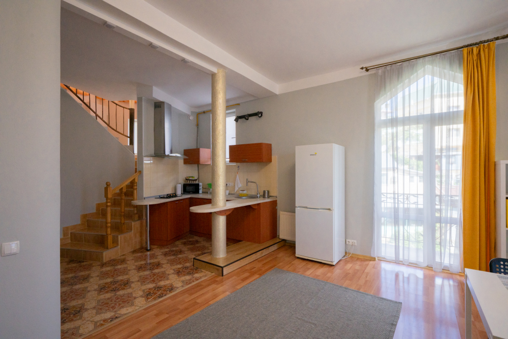 Предлагаем светлую уютную квартиру-студию в двух уровнях для комфортного отдыха в самом центре Ялты. Квартира полностью укомплектована для временного проживания и удаленной работы, позволяет разместить до 6 человек.