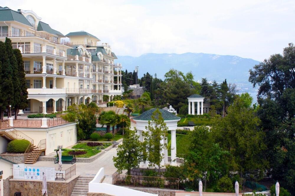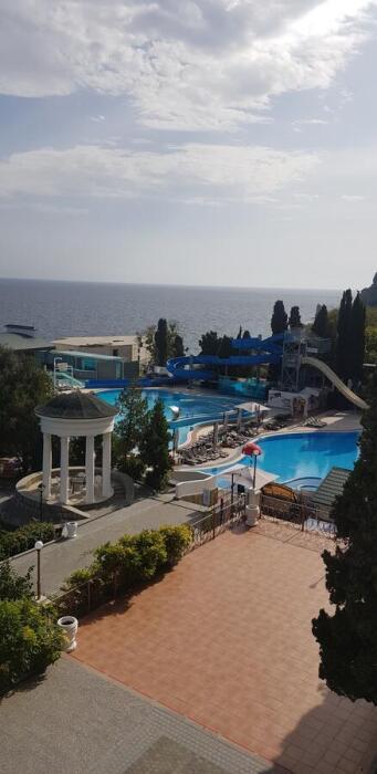 Частные апартаменты в климат-павильоне «Сон у моря» на территории одного из лучших семейных курортов Крыма - Palmira Palace, в 7 км от Ялты на Южном берегу Черного моря. Первая линия, в 20 метрах от собственного благоустроенного пляжа отеля (лежаки, бунгало, полотенца).