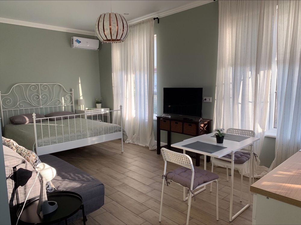 На территории расположено 4 дизайнерских апартамента, каждый в своем индивидуальном стиле. Апартаменты оснащены подачей горячей/холодной воды, электрическим чайником, микроволновкой, электроплитой (по запросу), холодильником, телевизором, кухонными принадлежностями, постельным бельем и полотенцами (бесплатно меняем каждые 5 дней). Вход в апартаменты индивидуальный, с выходом в патио или на террасу.