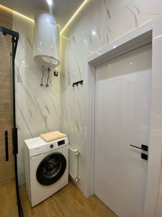 - Стиральная машина, душевая кабина, фен, гладильная доска, утюг, бойлер горячей воды