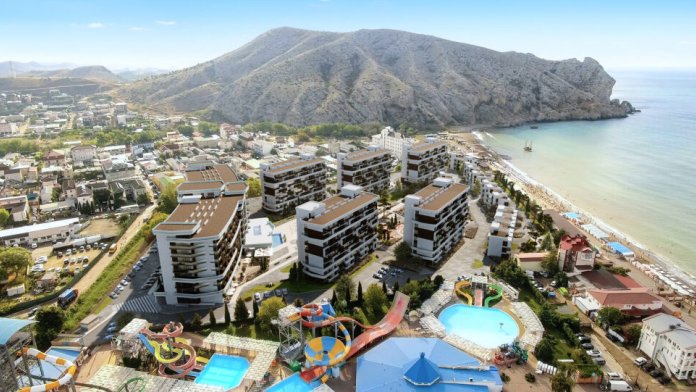 Сдаем премиум апартаменты в жилом комплексе Atlas Apart-Hotel&SPA на берегу моря. Окна с видом на бассейн, красивую территорию живописные виды на горы и аквапарк. 50 метров от моря, закрытая территория, оборудованный пляж, бесплатная парковка. На территории комплекса детские площадки, 2 открытых подогреваемых бассейна, магазин, большой ресторан, амфитеатр. На соседней территории расположен большой аквапарк, в шаговой доступности красивая набережная, рынок, рестораны, кафе, столовые, экскурсионное бюро. Так же для гостей апарт комплекса есть спа-комплекс с бассейнами и банями, тренажерный зал.