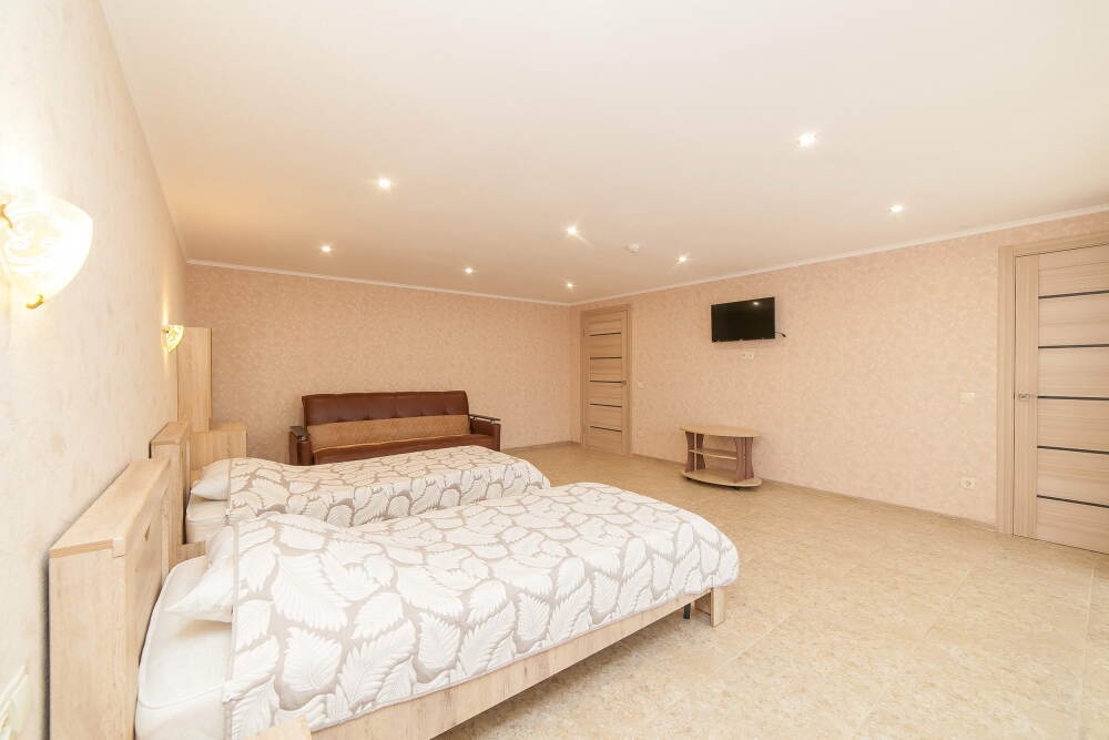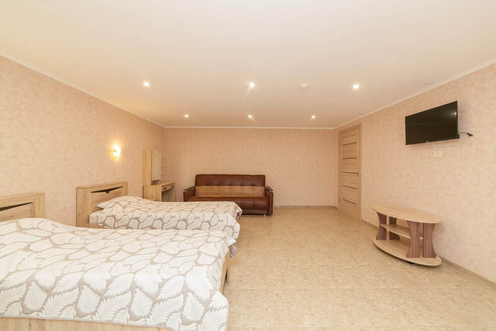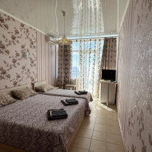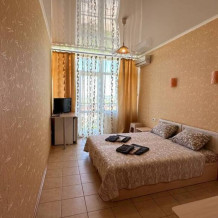 Спальные места в комнате: двуспальная кровать (ширина 180 см) двуспальный диван. В этой комнате есть все для удобного отдыха: кондиционер, плазменный телевизор, холодильник, санузел с душем, фен, шкаф, холодильник, электрочайник. Прекрасный вид с балкона. Находятся на 2, 3 и 4 этажах.