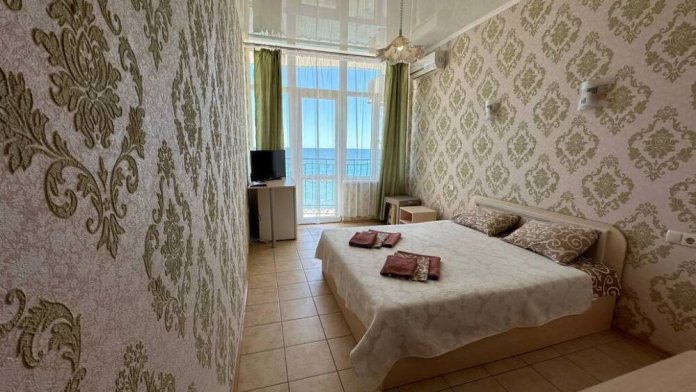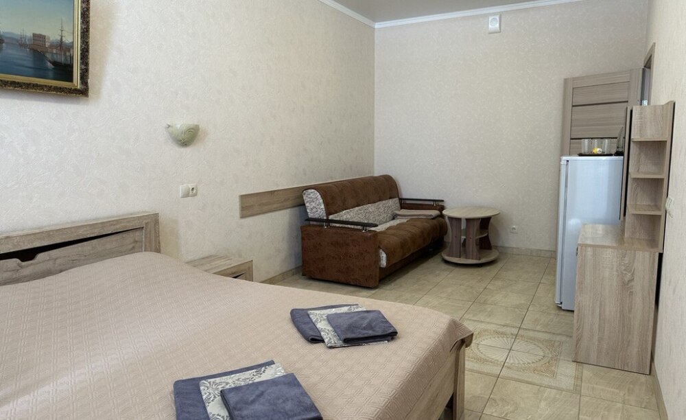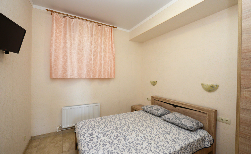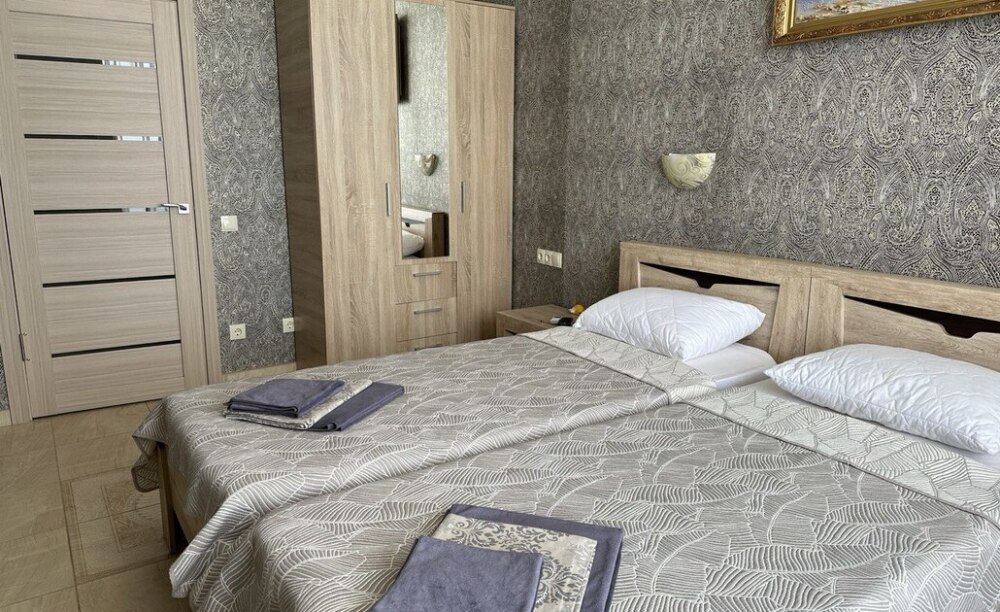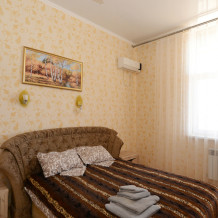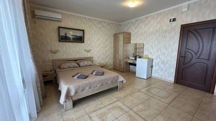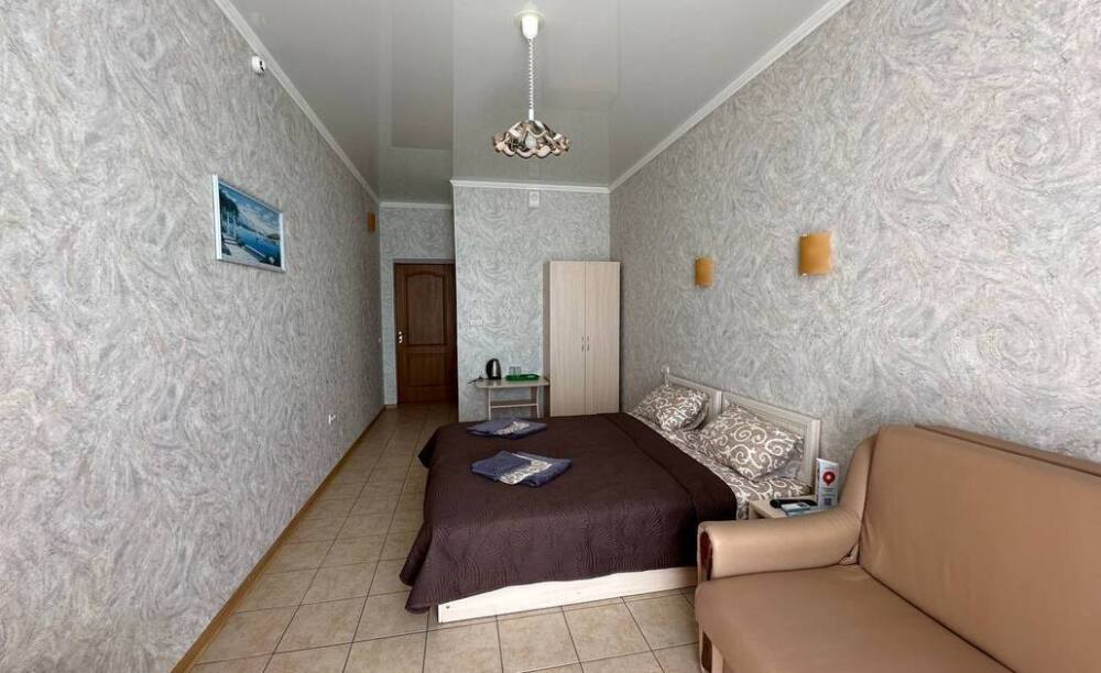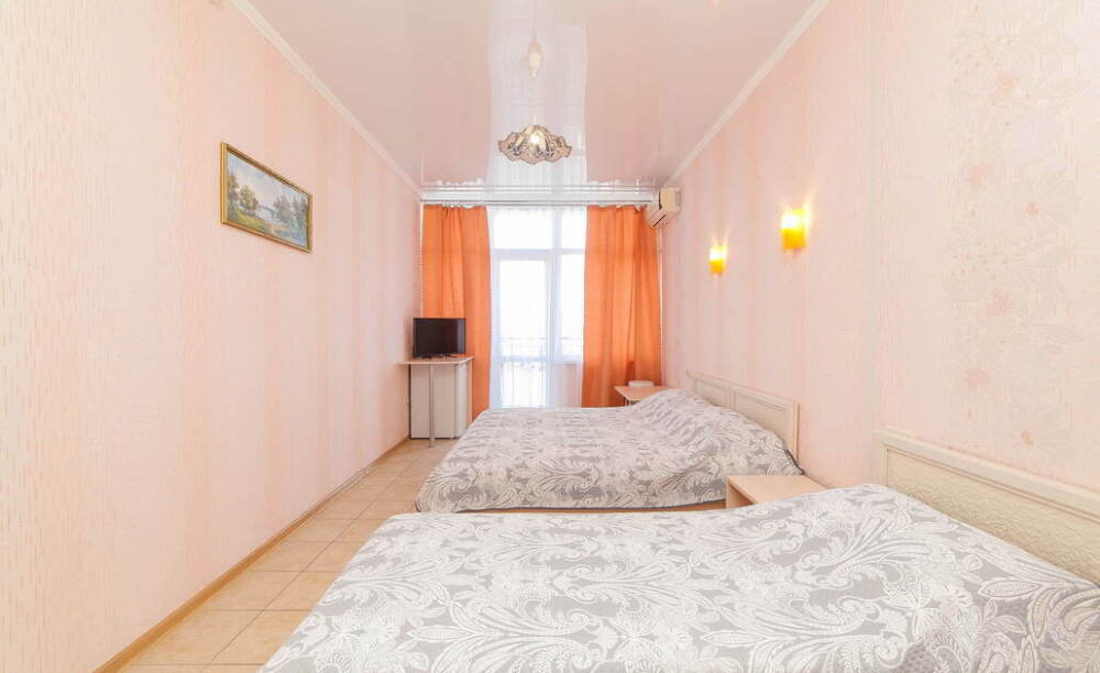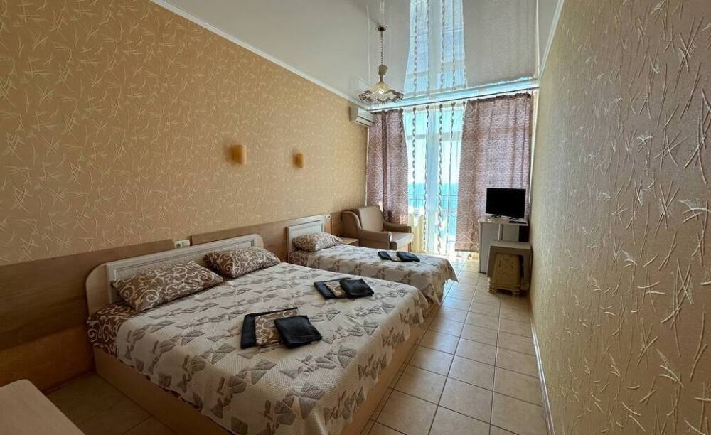Спальное место в комнате: одна двуспальная кровать (ширина 170 см). В этой комнате есть все для удобного отдыха: кондиционер, плазменный телевизор, холодильник, санузел с душем, фен, шкаф. Прекрасный вид на море с балкона добавляет комфорт этой комнате. Комнаты находятся на 4-5 этажах.