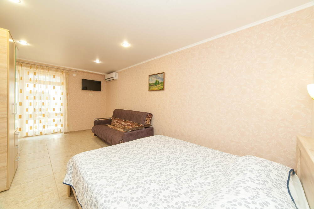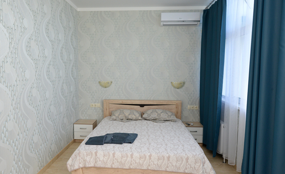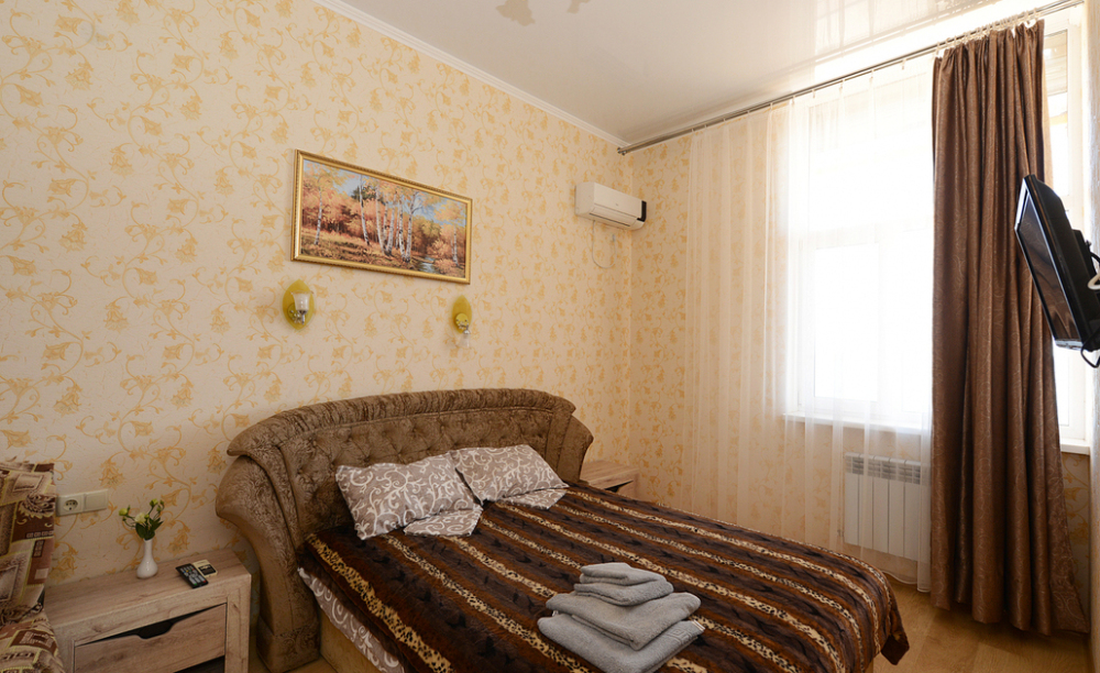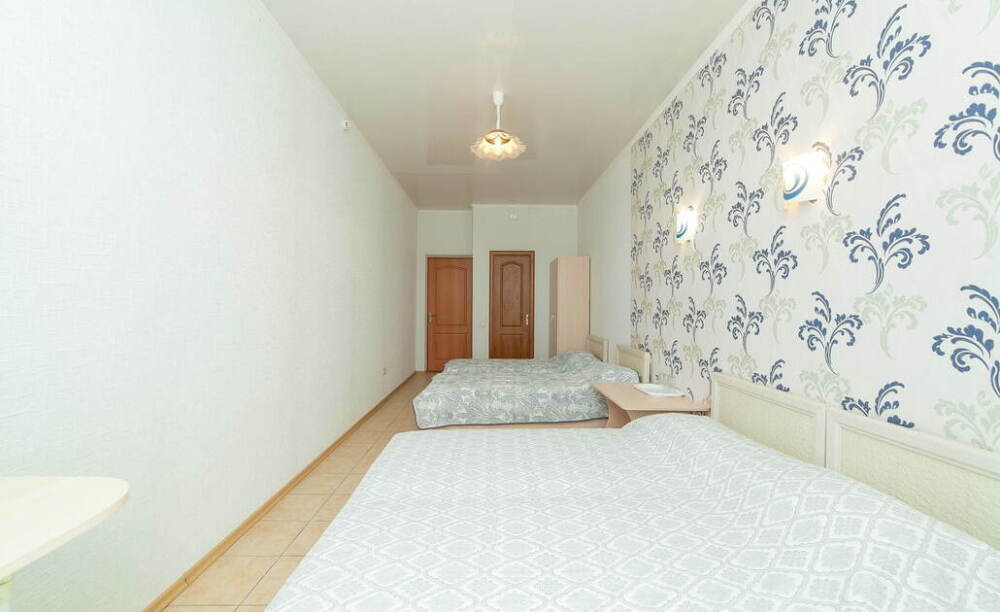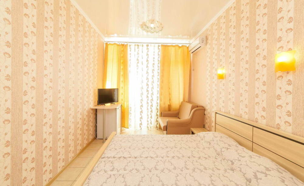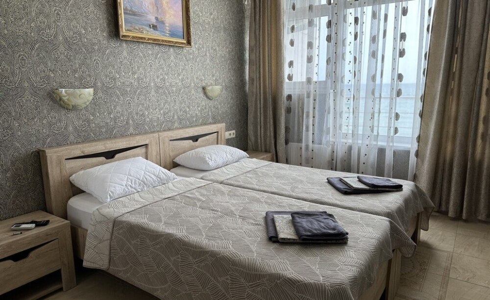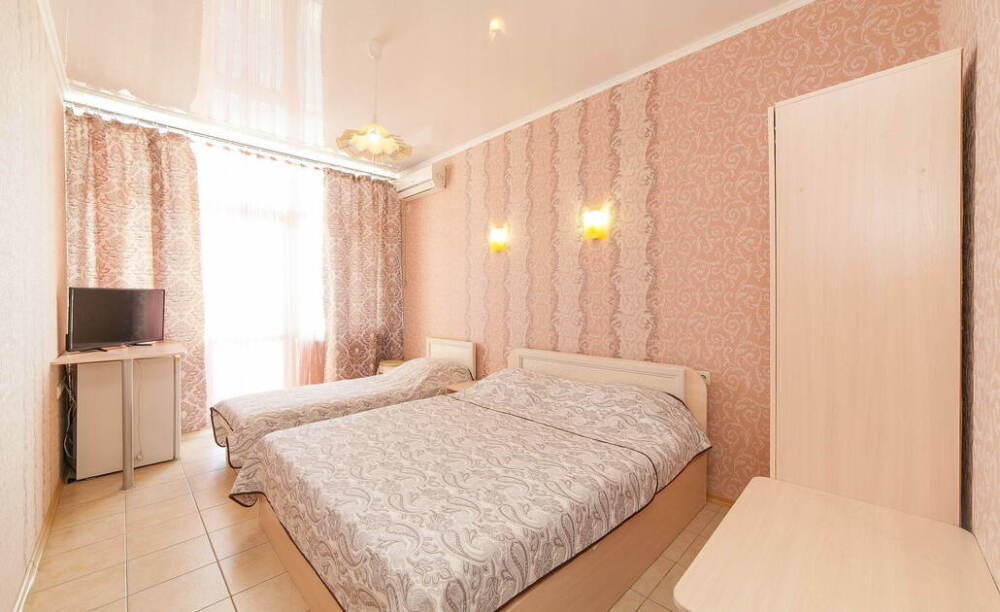 Спальное место в комнате: одна двуспальная кровать (ширина 170 см). В этой комнате есть все для удобного отдыха: кондиционер, плазменный телевизор, холодильник, санузел с душем, фен, шкаф. Прекрасный вид на море с балкона добавляет комфорт этой комнате. Комнаты находятся на 4-5 этажах.