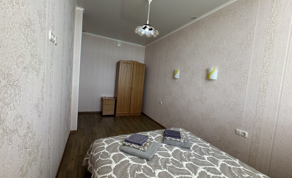 Спальные места в комнатах: 2 двуспальные кровати, 2 двуспальных дивана, так же есть возможность поставить доп. места, которые оплачиваются отдельно. Две раздельные комнаты с кондиционерами, плазменными телевизорами в каждой комнате, своя кухня, посуда, микроволновая печь, индукционная плита на 2 конфорки, холодильник, электрочайник, санузел с душем, фен, шкаф. Коттедж находится в 20 метрах от моря. На площадке возле коттеджа есть уютное место для отдыха, где стоит столик с креслами, где можно вечером выпить бокал крымского вина под тихую расслабляющую музыку и шум прибоя.