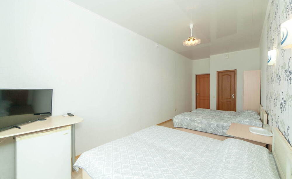 Спальные места в комнатах: 3 раздельные кровати (ширина 80 см), или двуспальная кровать и односпальная кровать, или двуспальная кровать и кресло-кровать. Кровати очень удобные, поэтому, при необходимости их можно сдвинуть. В этой комнате есть все для удобного отдыха: кондиционер, плазменный телевизор, холодильник, санузел с душем, фен, шкаф. Балкон этой комнаты выходит во внутренний дворик. Комнаты данной категории находятся на 2-5 этажах, по согласованию.