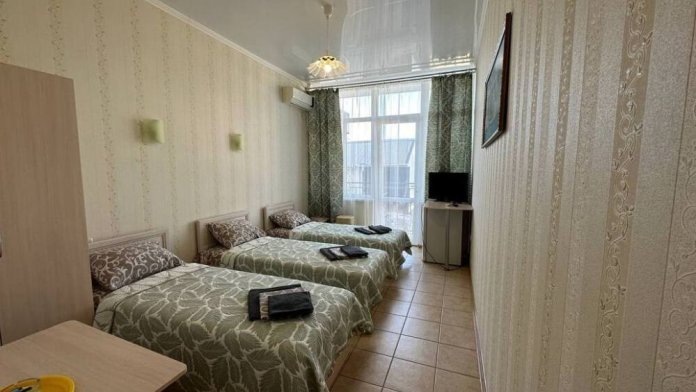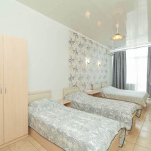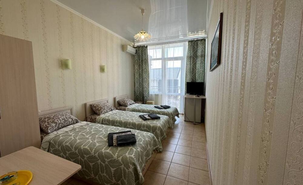Спальные места в комнатах: на 3 этаже - 3 раздельные кровати (ширина 80 см). Кровати очень удобные, поэтому, при необходимости их можно сдвинуть. На 2 этаже - 2 раздельные кровати и односпальный диван. В этой комнате есть все для удобного отдыха: кондиционер, плазменный телевизор, холодильник, санузел с душем, фен, шкаф. Прекрасный вид на море с балкона добавляет комфорт этой комнате. Комнаты данной категории находятся на 2-5 этажах, по согласованию.