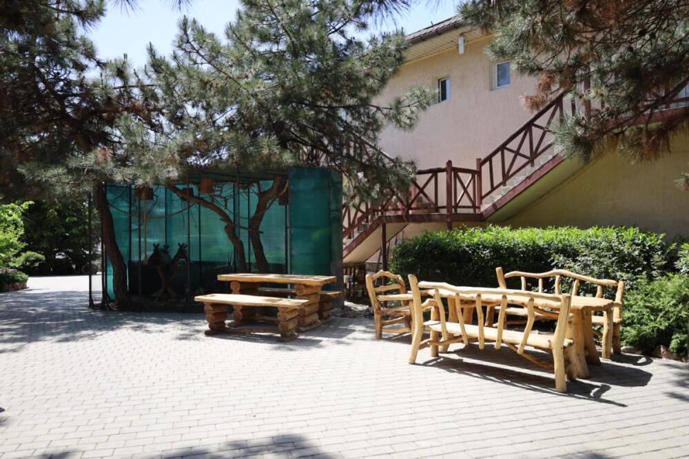 База отдыха занимает территорию более 1 гектара, на которой в шахматном порядке расположились 8 современных коттеджей с просторными террасами из которых открывается чудесный вид на Чёрное море. Туристический комплекс оборудован местами для отдыха с мангалами и летней мебелью, а садовый ландшафт делает его более уютным.