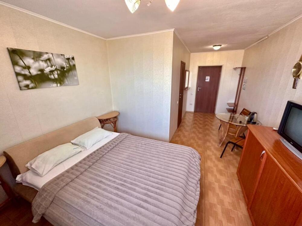 Номер с удобствами (туалет, душ, умывальник). В номере: ТВ, холодильник, телевизор, сплит-система, чайник,2-спальная кровать. Широкая удобная терраса. Право бесплатного проживания предоставляется одному ребенку до 7 лет.