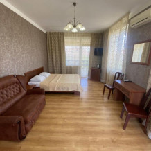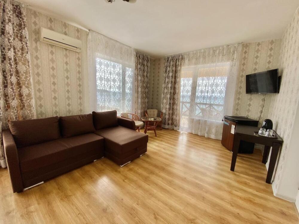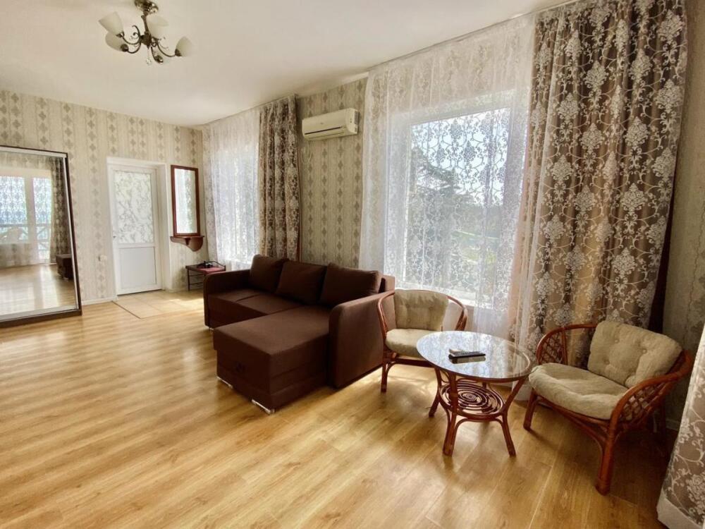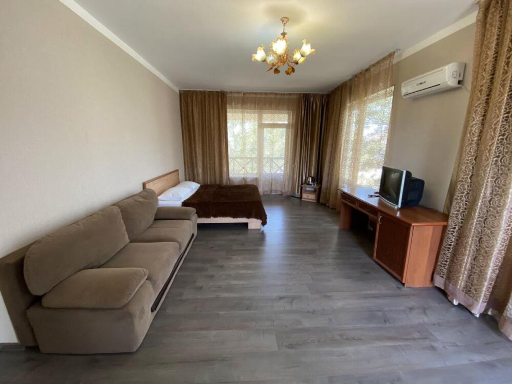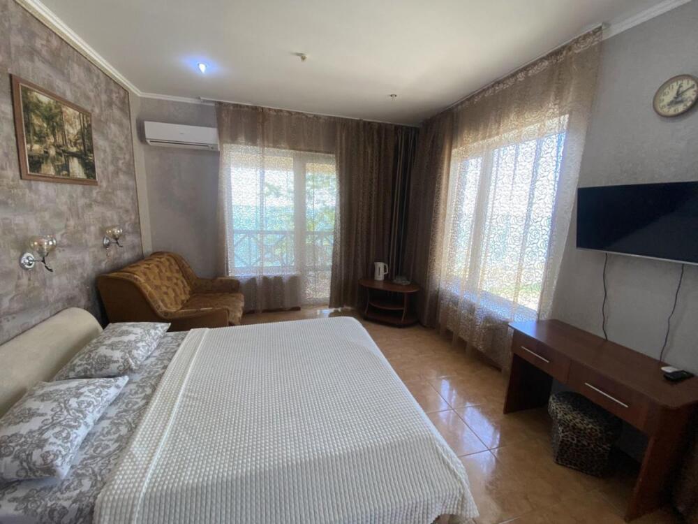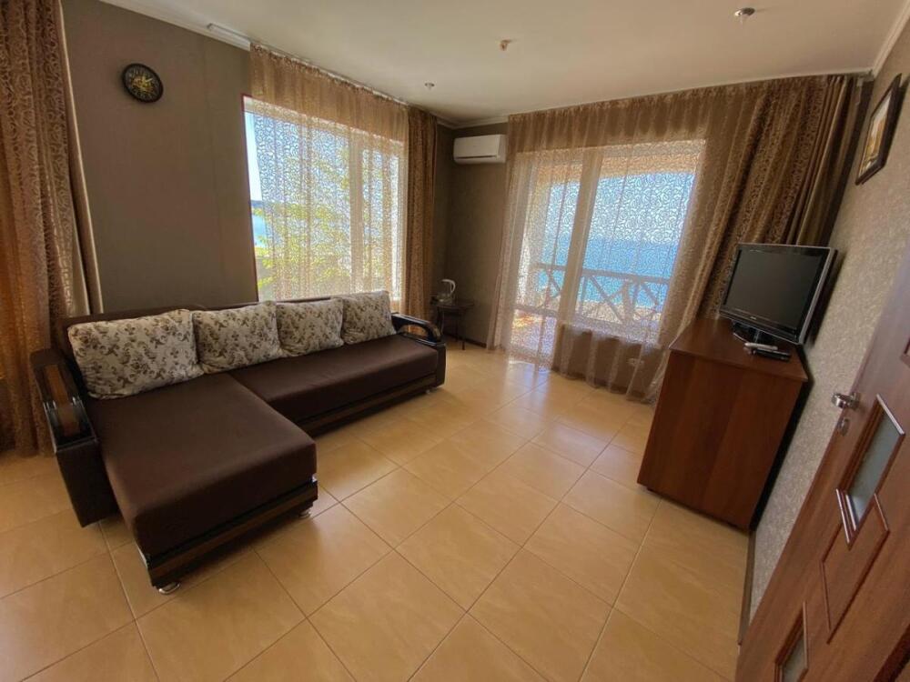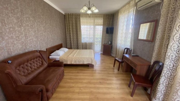 В номере: ТВ, холодильник, телевизор, сплит-система, чайник, 2-спальная кровать, раскладной диван. Широкая удобная терраса. Право бесплатного проживания предоставляется одному ребенку до 7 лет.