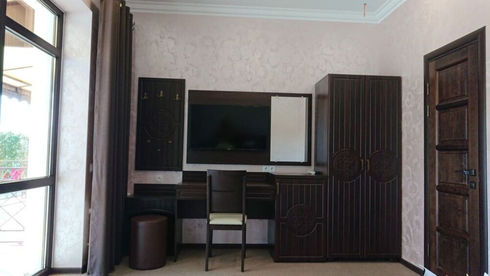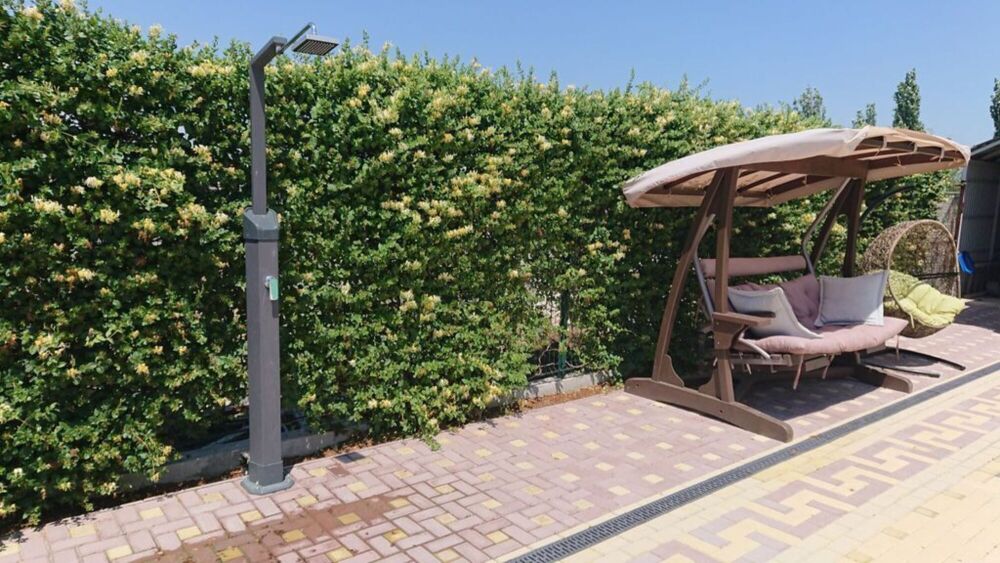 На территории гостевого дома есть общая кухня со всей необходимой техникой и посудой. К услугам гостей – открытый подогреваемый бассейн, летний душ, детская площадка, мангал, барбекю, парковка для машины под видеонаблюдением.
