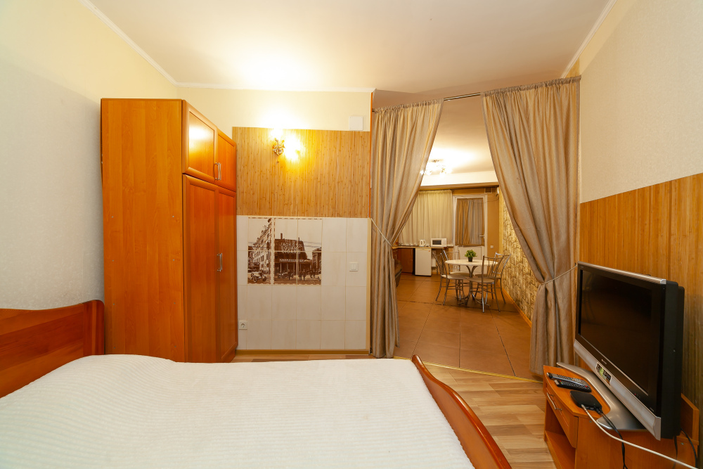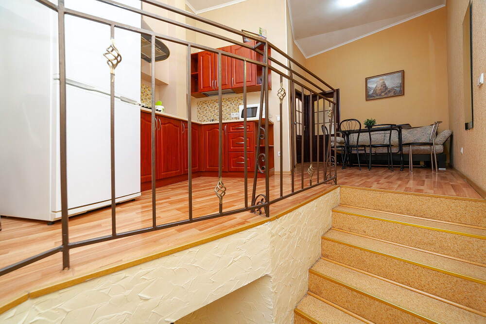 Номера светлые с хорошим ремонтом, оборудованы всем необходимым для комфортного отдыха. В каждом номере удобная мебель, оборудованная кухня, кондиционер, телевизор, санузел с душевой кабинкой (горячая и холодная вода круглосуточно). Номера для некурящих.