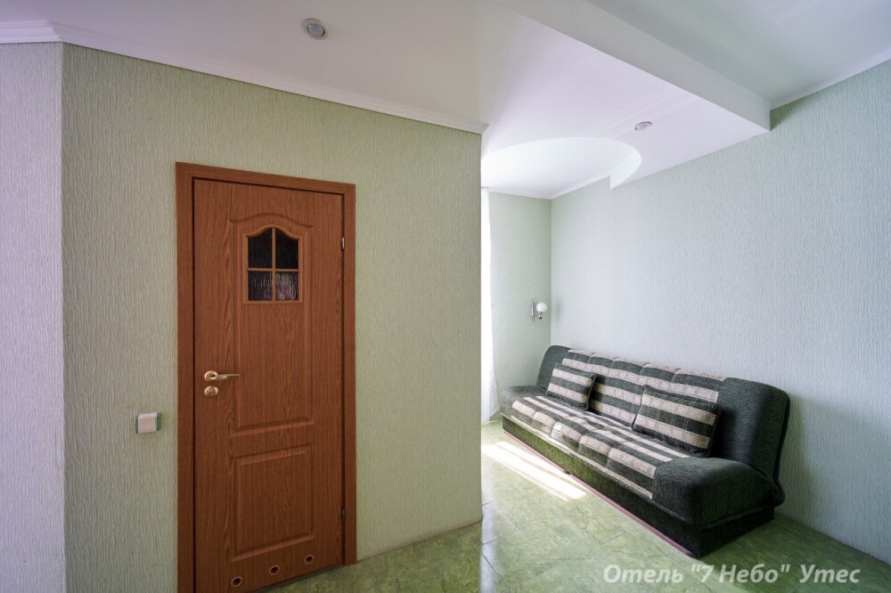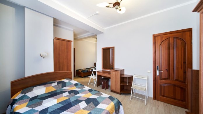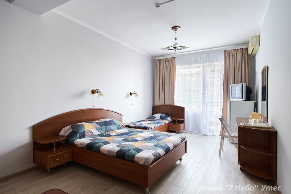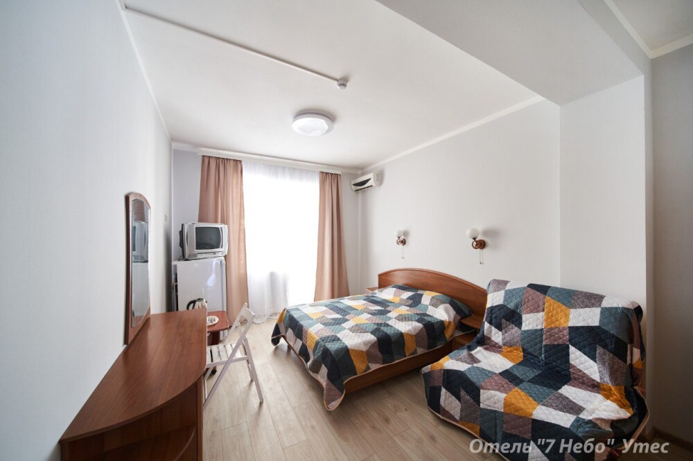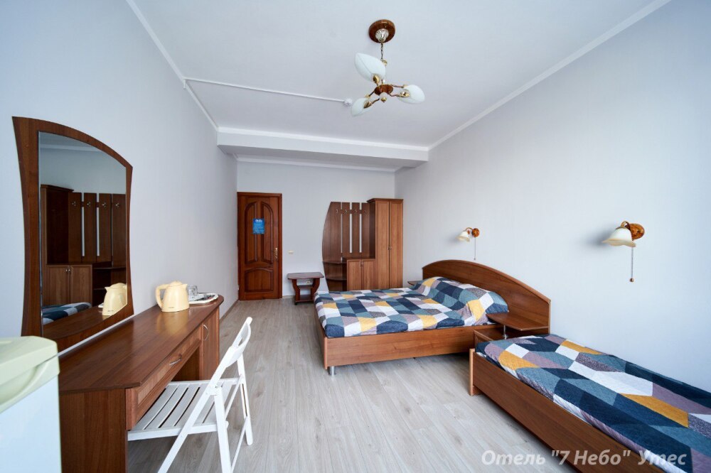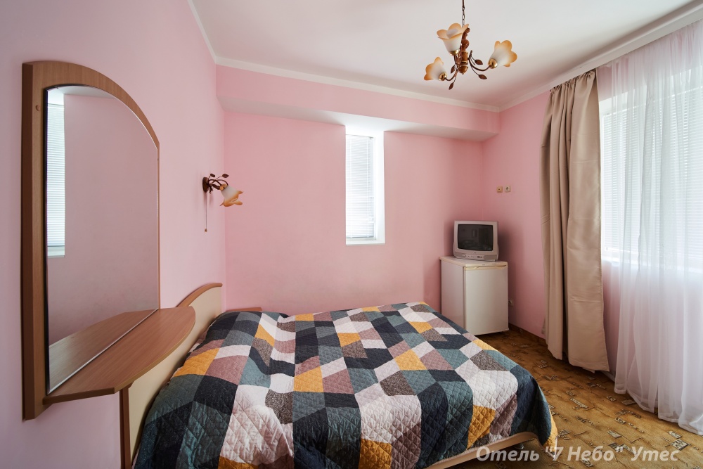 В номере одна двухместная кровать и двуспальный или полуторный раскладной диван.