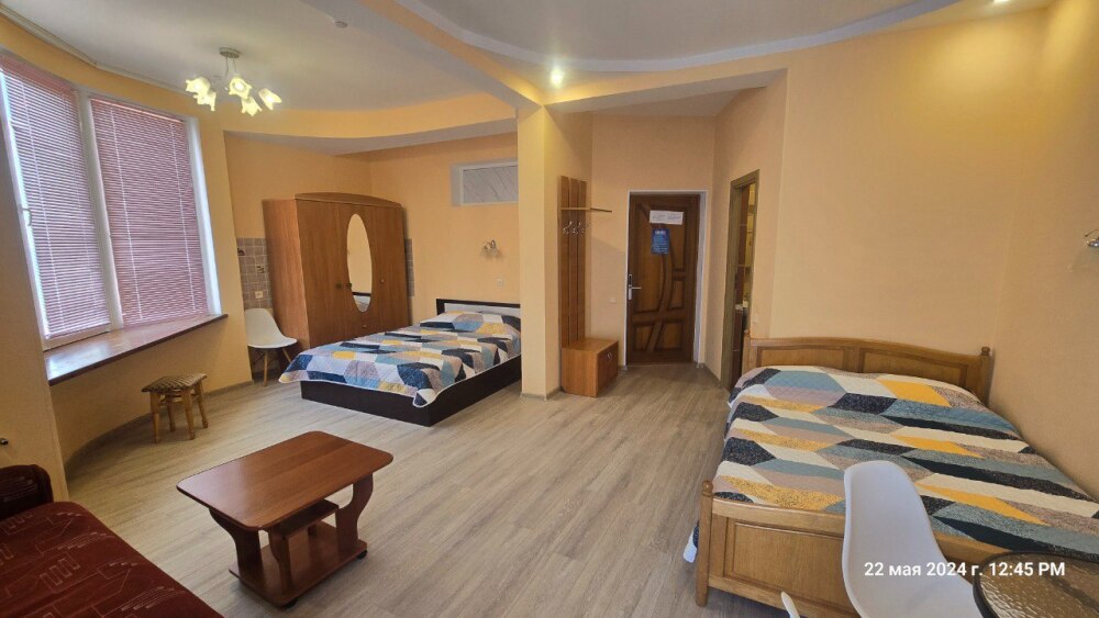В номере одна двухместная кровать, двухместный раскладной диван/либо полноценная полуторная кровать.