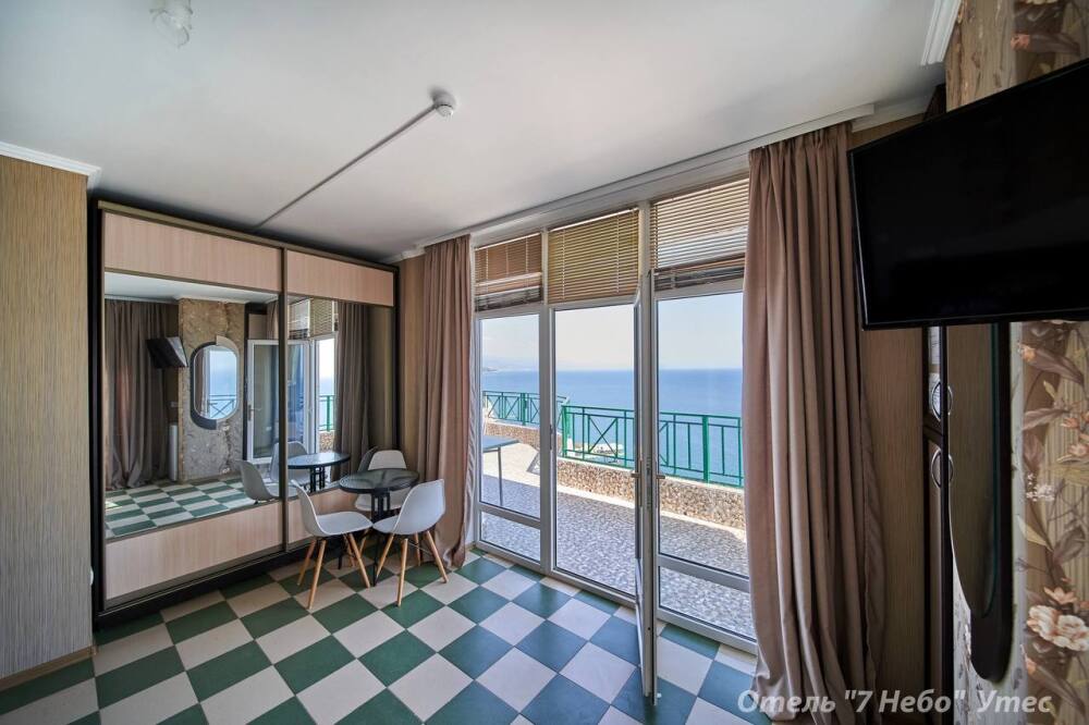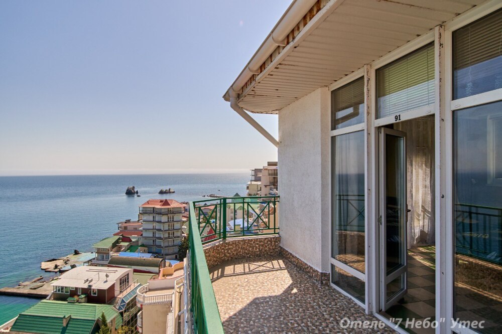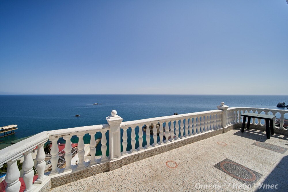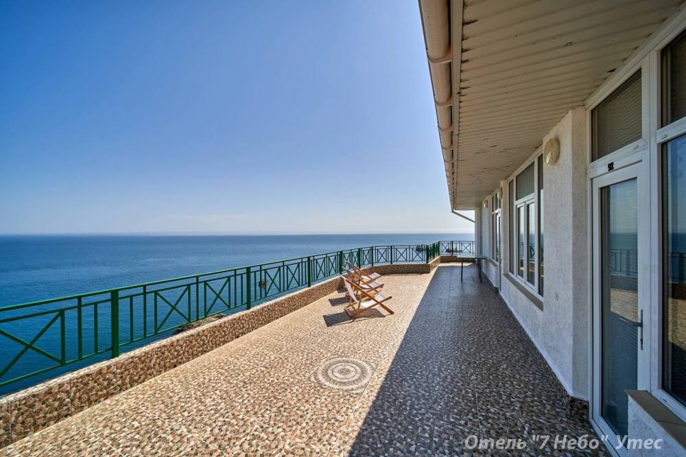 Из номера есть выход на большую общую с соседнем номером террасу с панорамным видом на море.