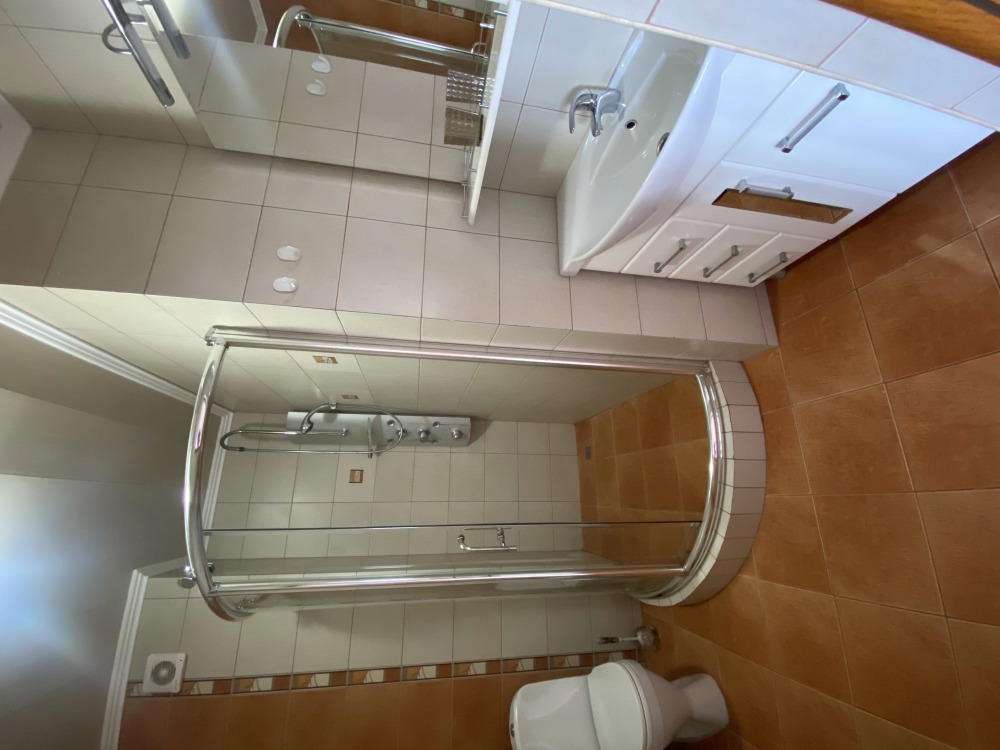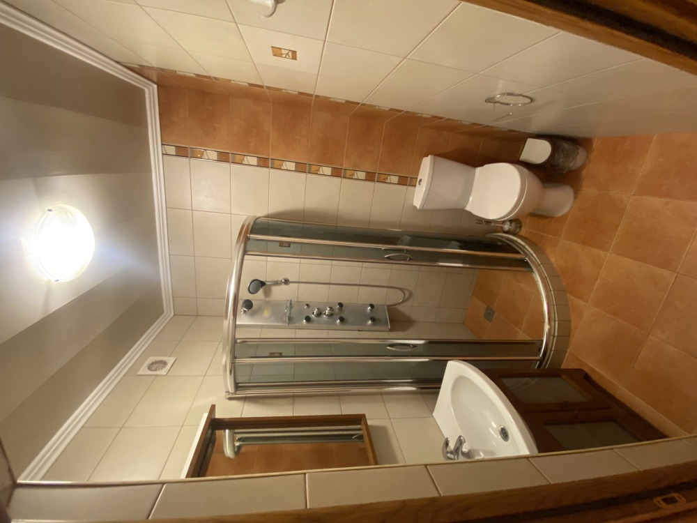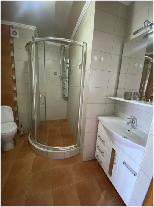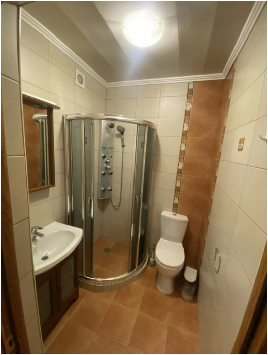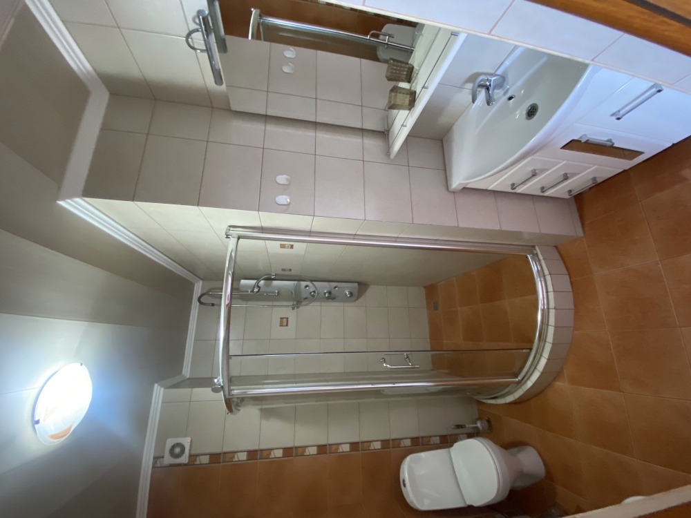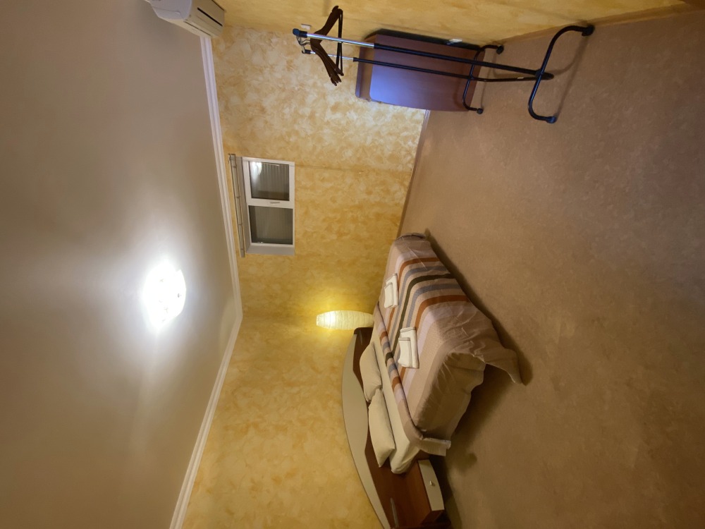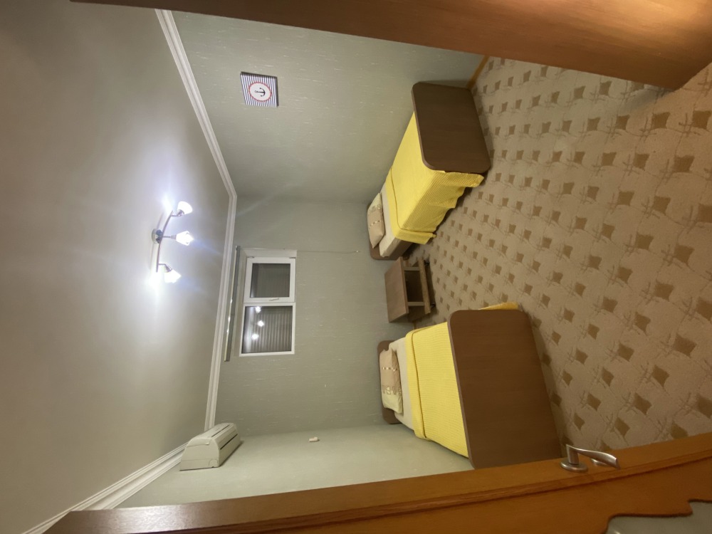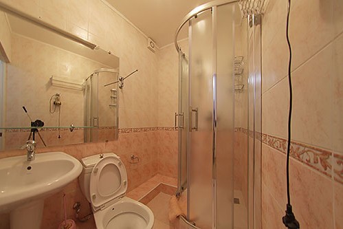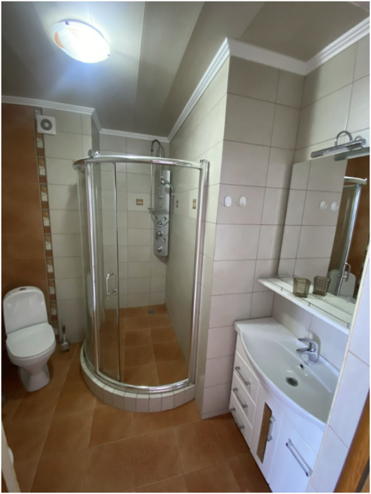 Одна спальня со своим санузлом, с двуспальной кроватью. Вторая спальня с двумя раздельными односпальными кроватями. Есть еще один санузел между спальней и кухней.