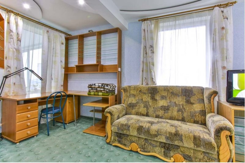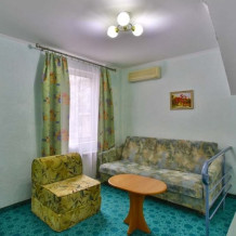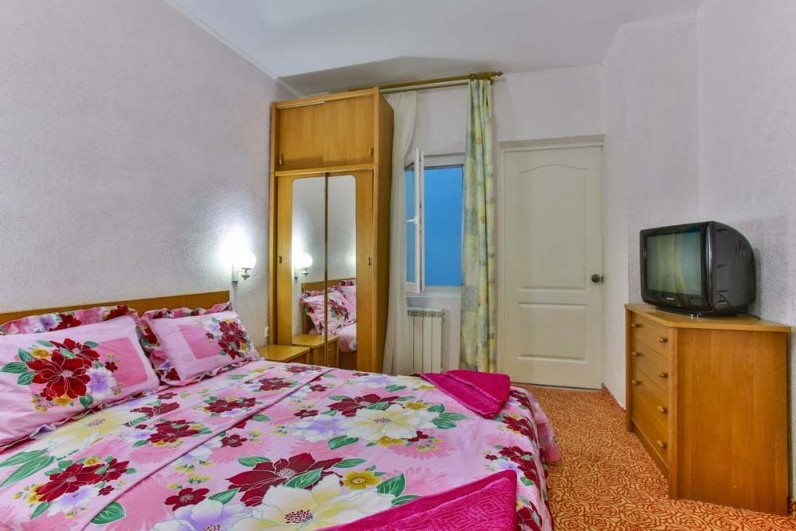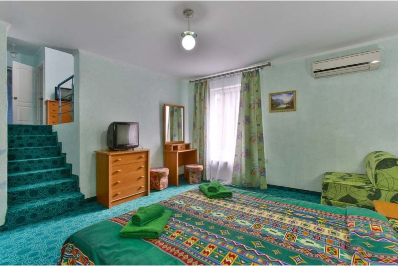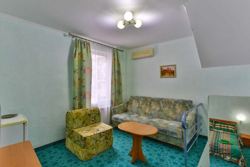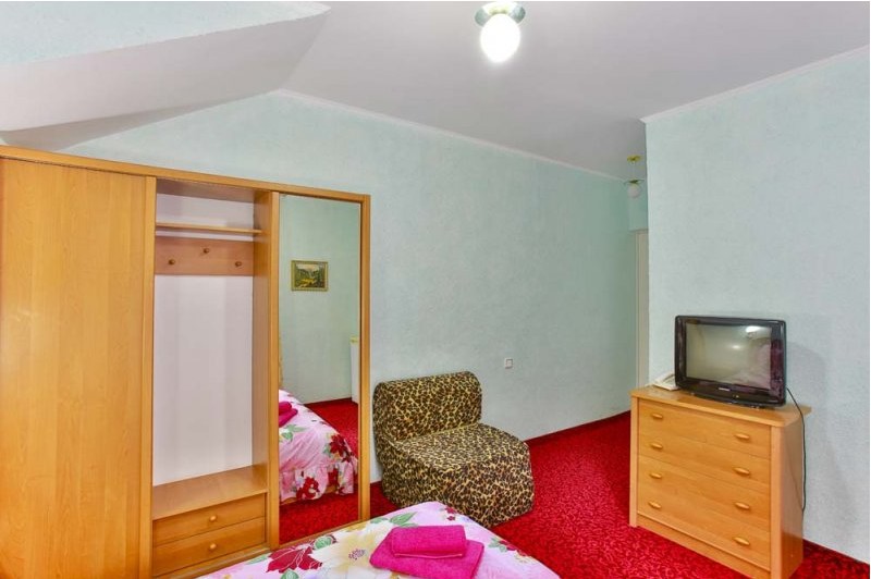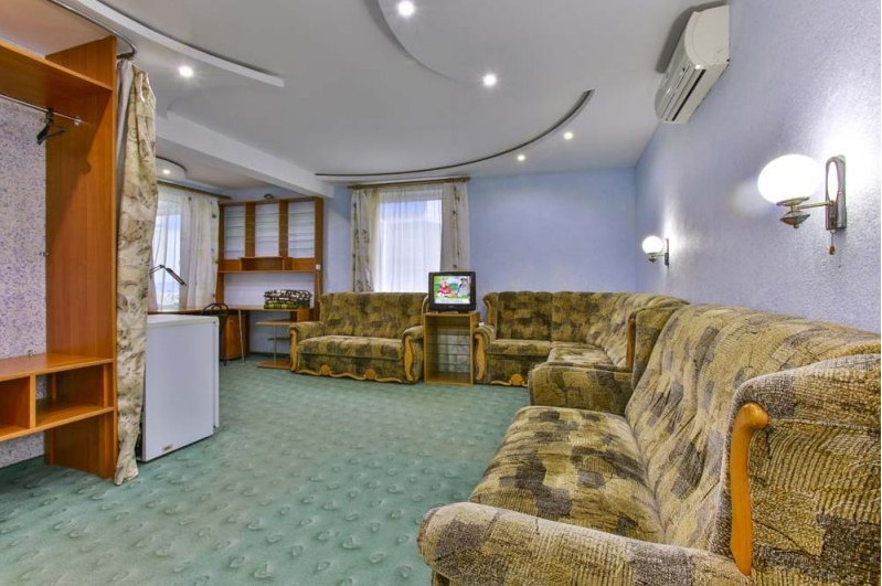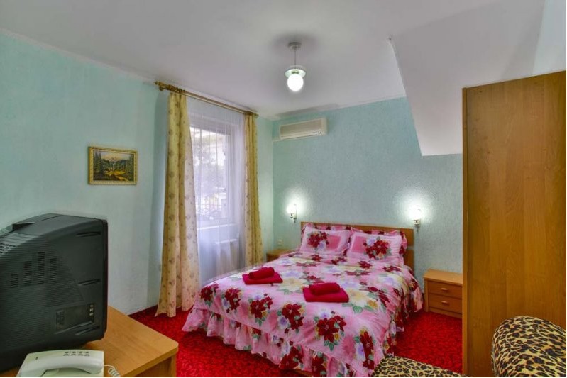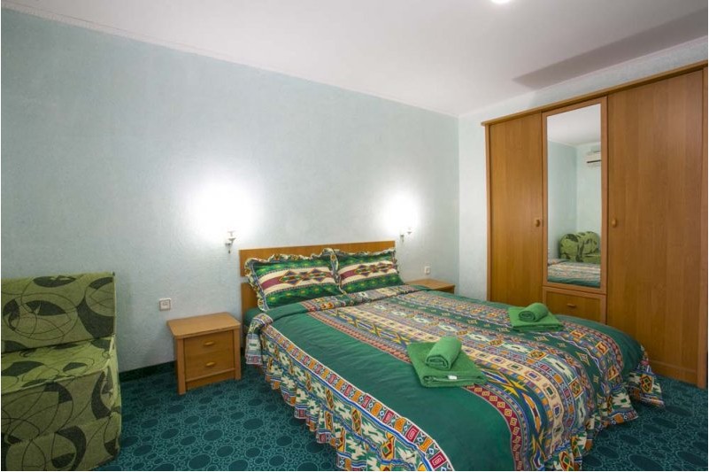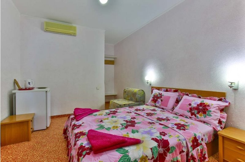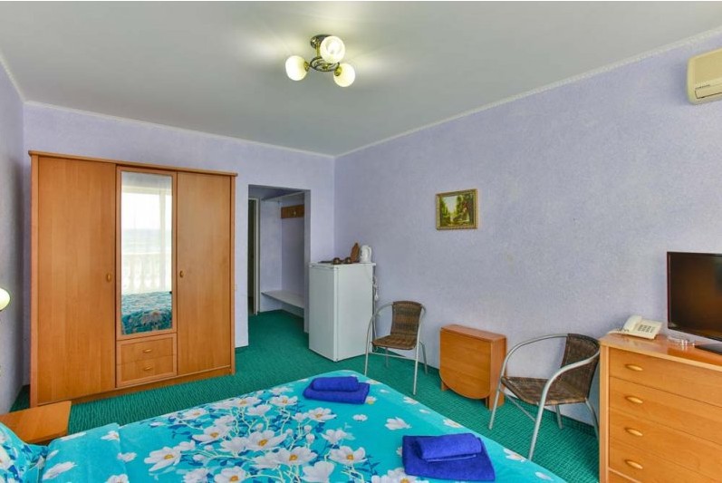 Во всех номерах санузел, телевизор , холодильник, чайник, набор посуды, кондиционер, сейф, фен, Wi-Fi, горячая и холодная вода круглосуточно, центральное отопление (на зимний период), двуспальная кровать и раскладное кресло. Уборка ежедневно.