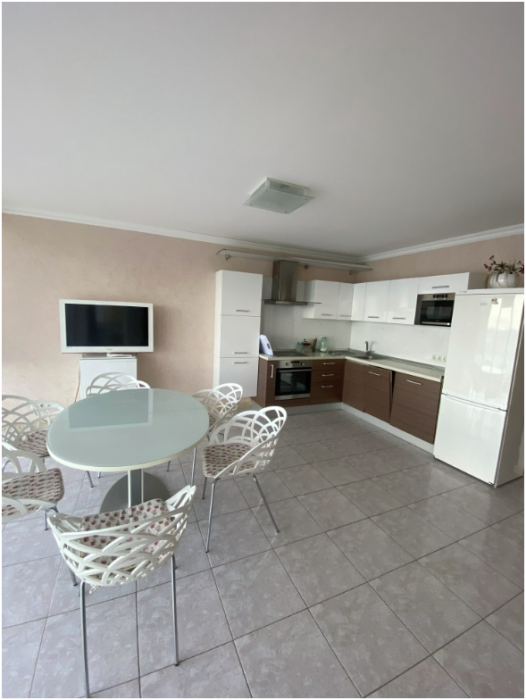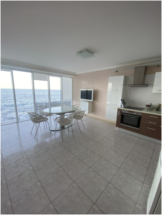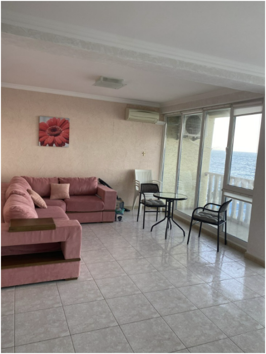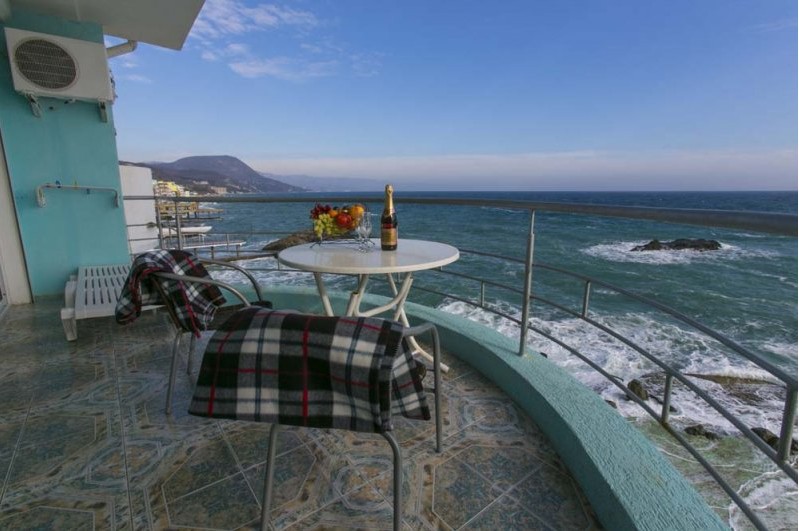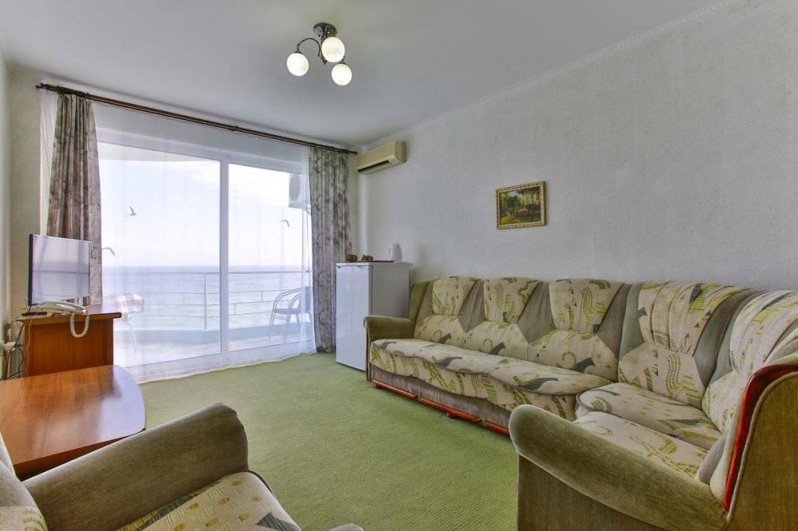 Апартаменты с видом на море, с балконом, 2 этаж. Кухня оборудована плитой, духовкой, посудомоечной машиной, микроволновой печью, электрочайником. Большой набор посуды. Обеденная зона, диван раскладывается.