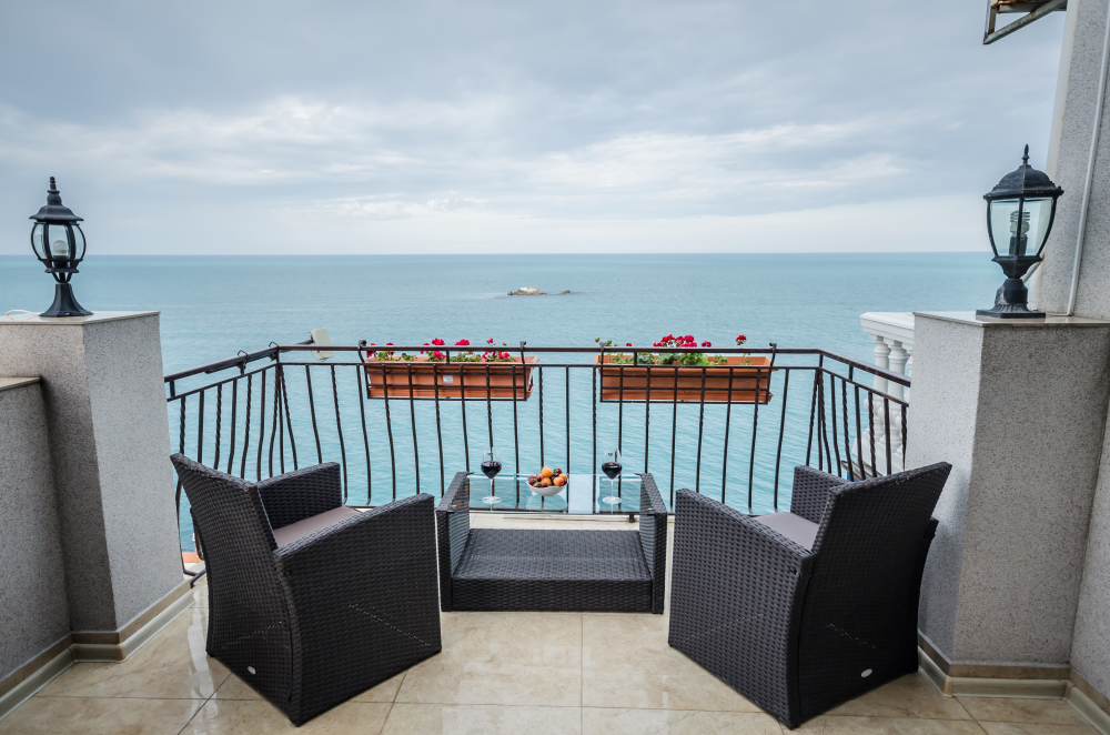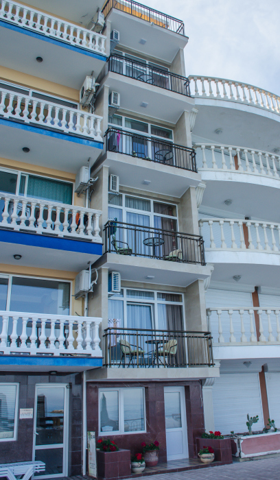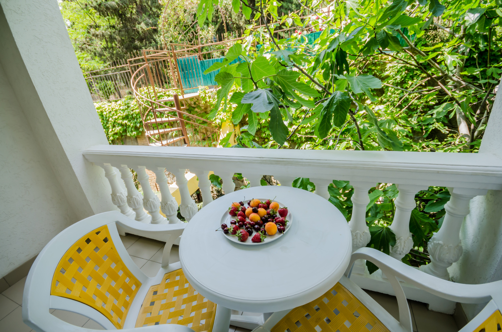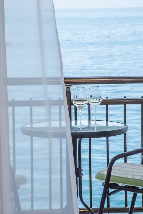 Находясь на балконах можно любоваться бескрайними морскими просторами, наблюдать за игрой дельфинов в море и дружить с бакланами, которые прилетают в гости, на балконах есть пластиковая мебель для отдыха, бокалы для напитков, белое хлопковое белье.