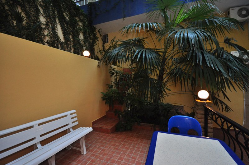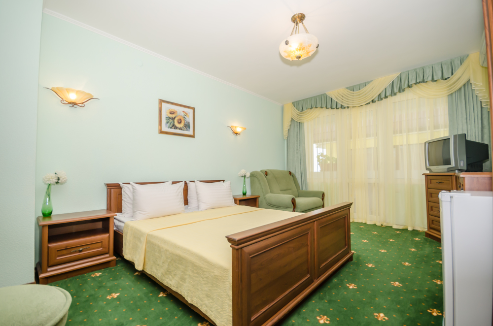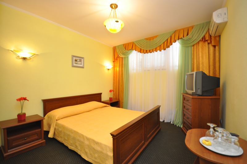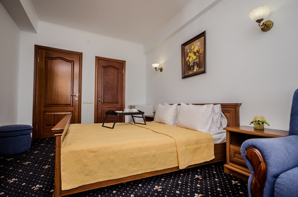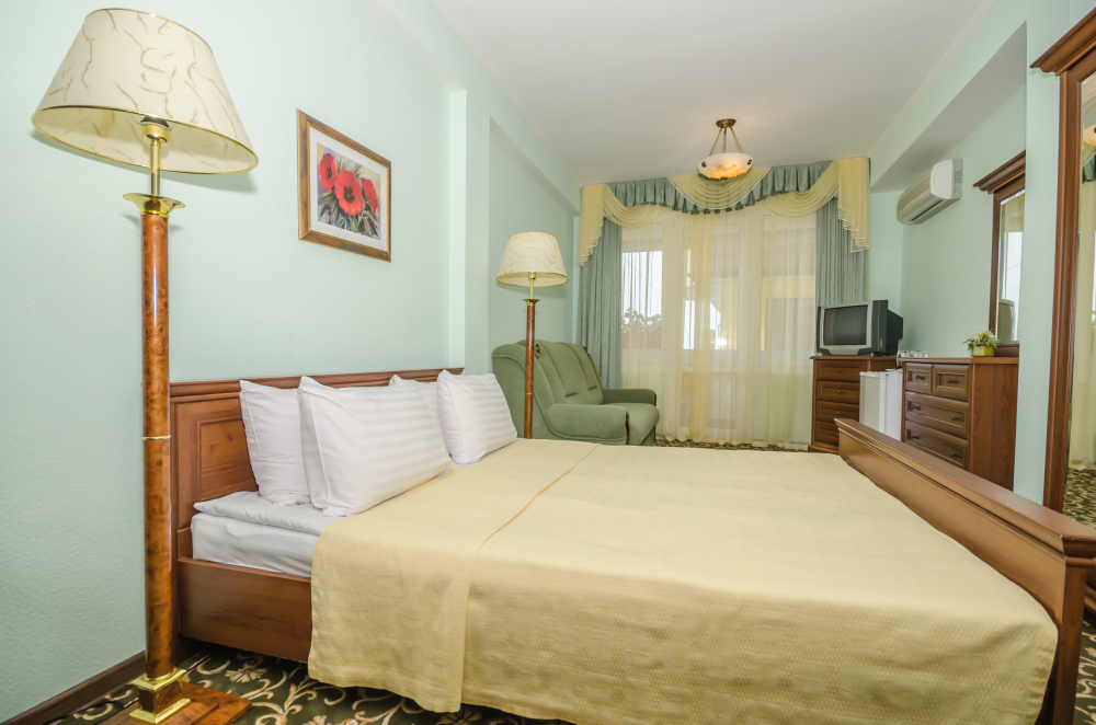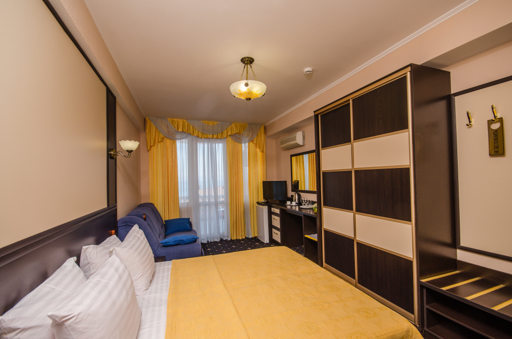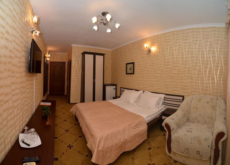 Номера выходят на северную сторону. Для комфортного отдыха вдвоем номер располагает всем необходимым. Это кондиционер для создания прохлады, полный пакет телеканалов, Wi-Fi. Номер без балкона.