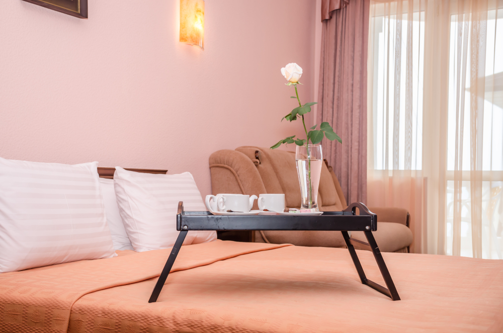 Смена постельного белья раз в три дня, в номере: поднос , бокалы для вина и стаканы для воды, ключ для открывания бутылок, сейф.