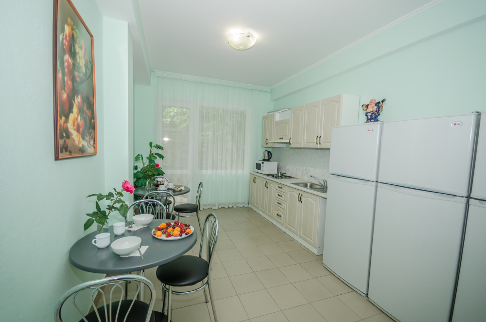 Любой отдых должен сопровождаться вкусными завтраками, обедами и ужинами. Отель предлагает Вам удобные и комфортные варианты питания, у нас есть оборудованная кухня, где Вы можете готовить самостоятельно. А в кафе к Вашим услугам заказное меню, по которому Вы сможете питаться три раза в сутки.