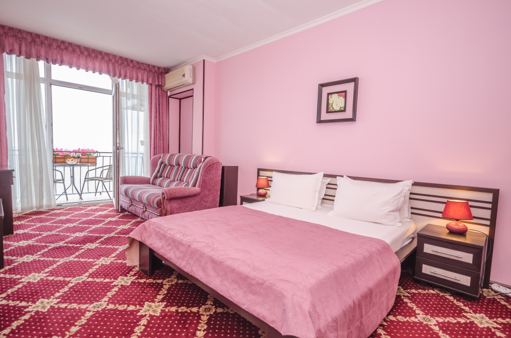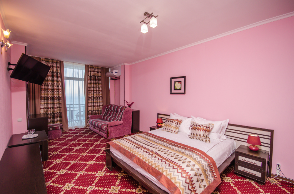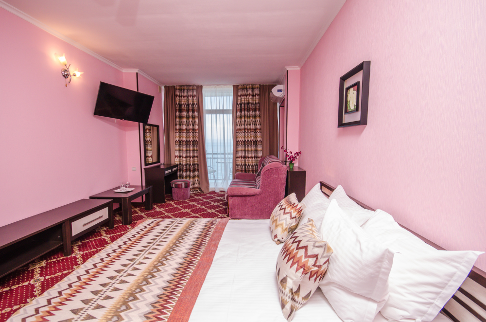 Номера выходят на северную сторону. Для комфортного отдыха вдвоем номер располагает всем необходимым. Это балкон, кондиционер для создания прохлады, полный пакет телеканалов.