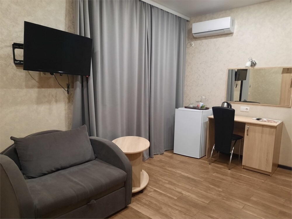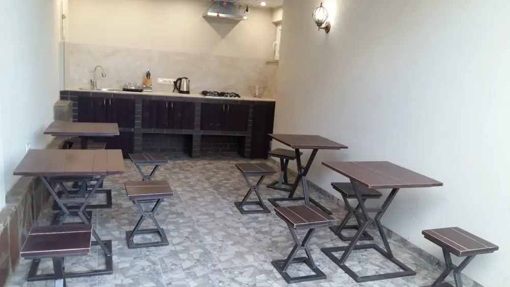 В каждом номере все необходимое для отдыха и работы: скоростной Wi-Fi, рабочая зона, кондиционер, холодильник, чайник, сейф, санузел с душевой, фен, телевизор с Wi-Fi, зона столовой, зона мангала.