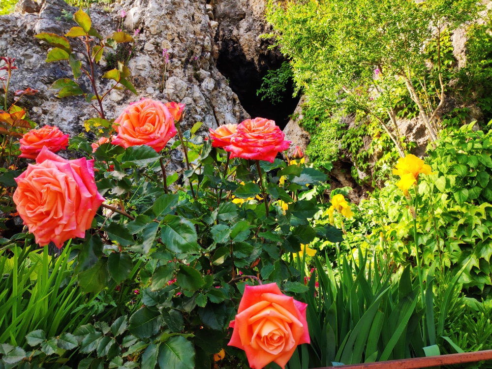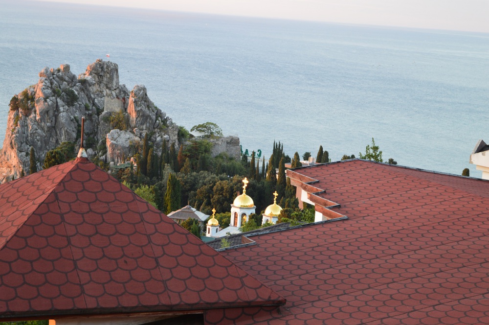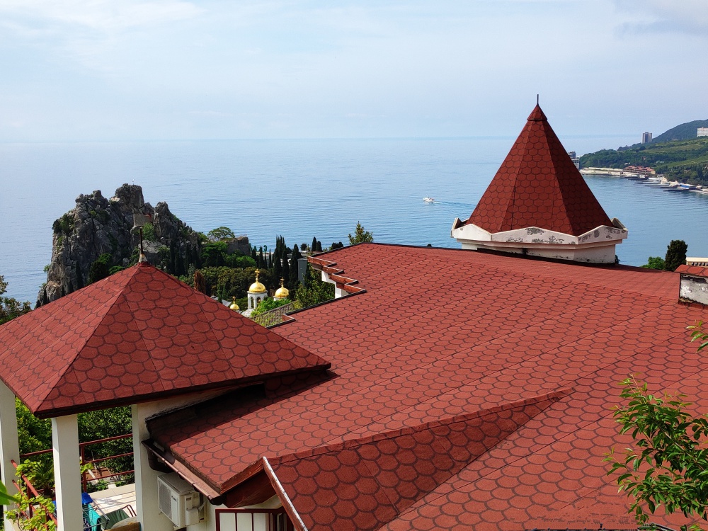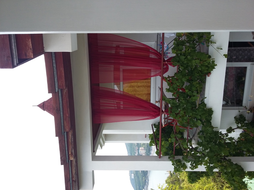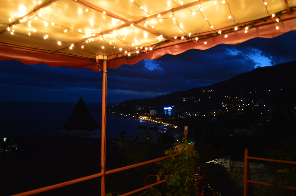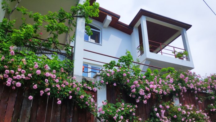 Огороженный живописный двор, есть барбекю, пруд с рыбками, видовая площадка. До пляжа 10-12 минут спуститься, обратно 15-20 минут ( перед домом есть подъем).