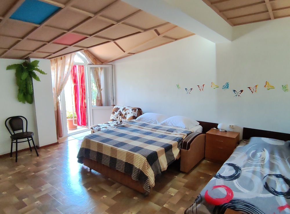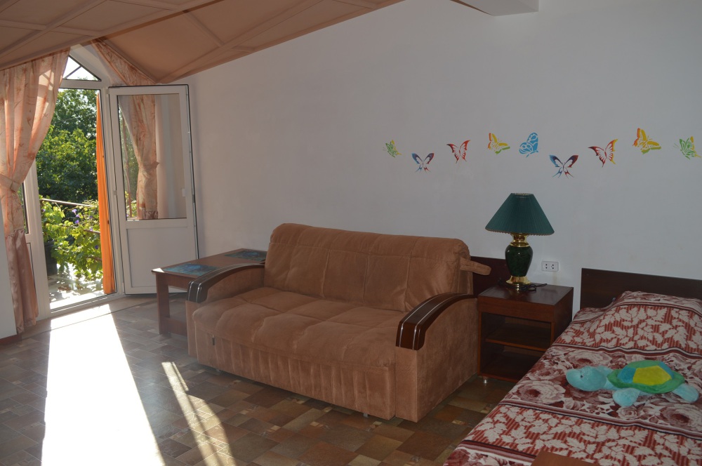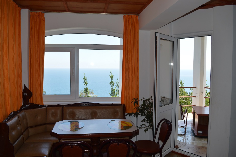 Просторный номер для семьи их 3х-4х человек. Балкон с панорамным видом на море.