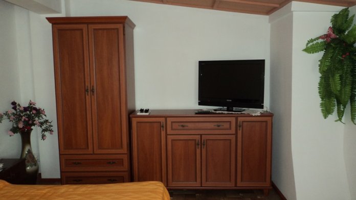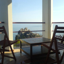 Душ, туалет, ТВ, холодильники, кондиционеры, балконы с панорамным видом на море, горы, набережную, кухни.