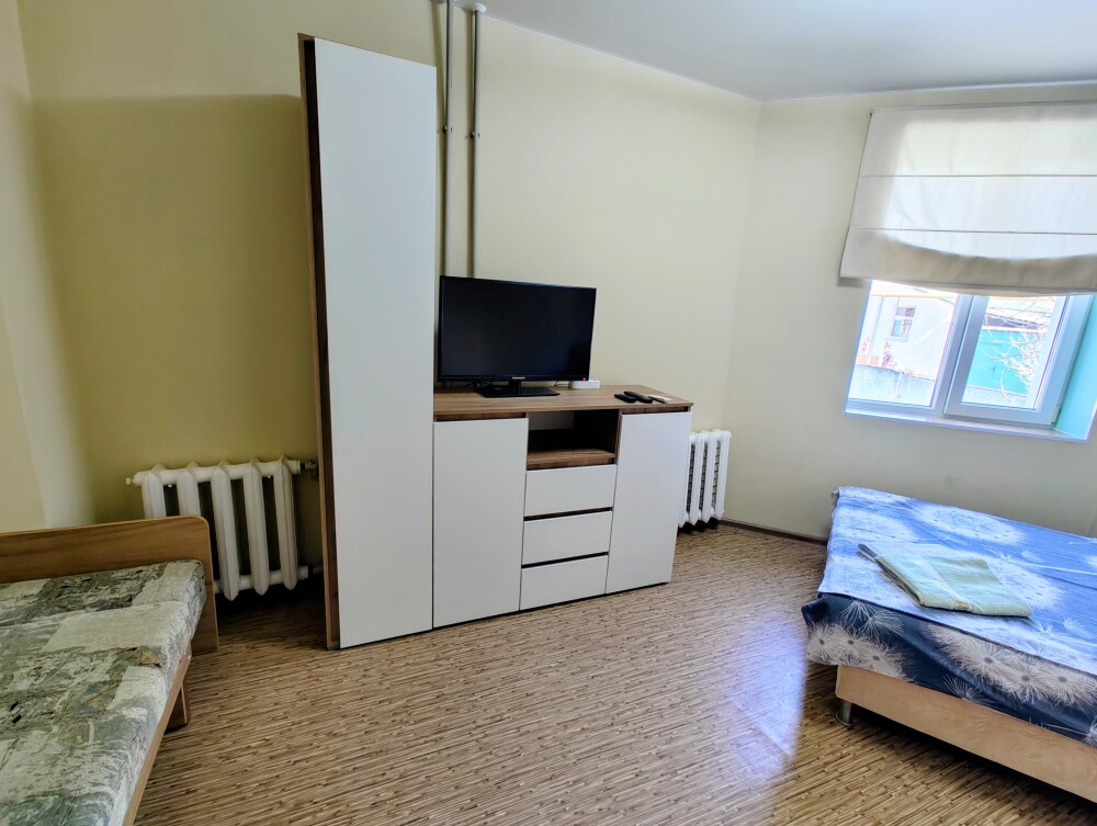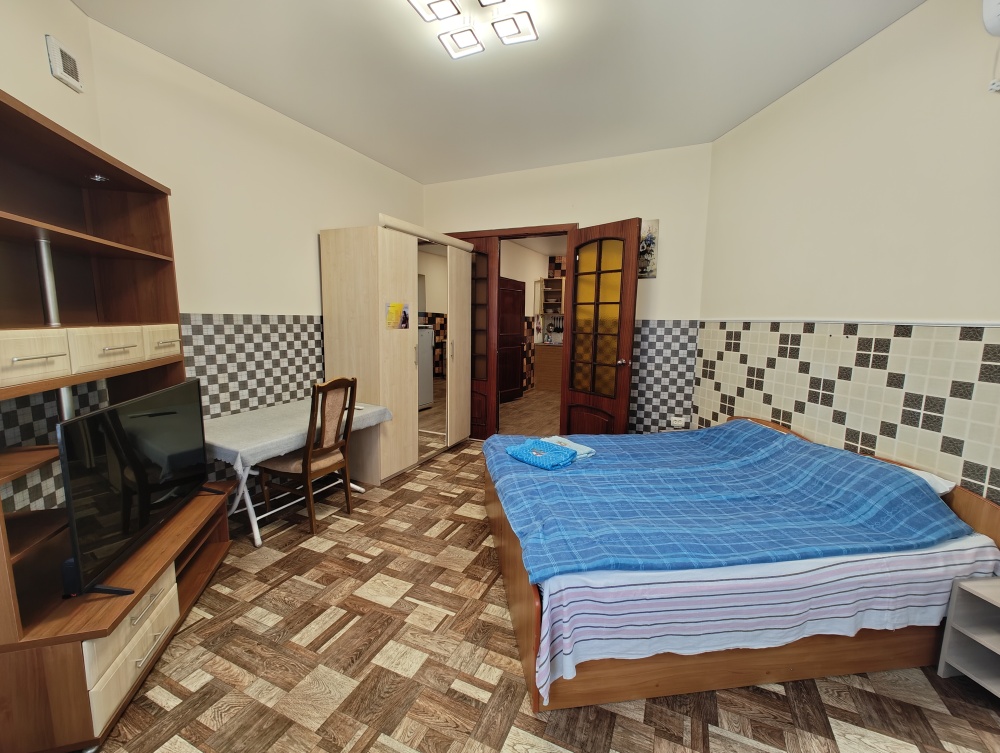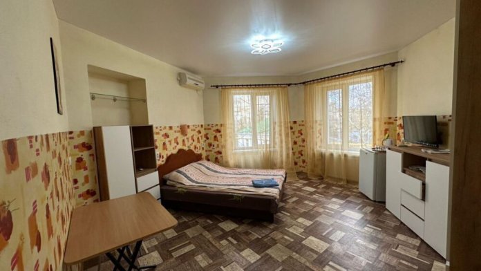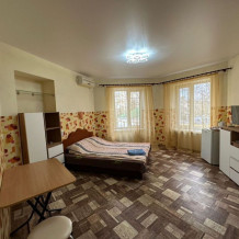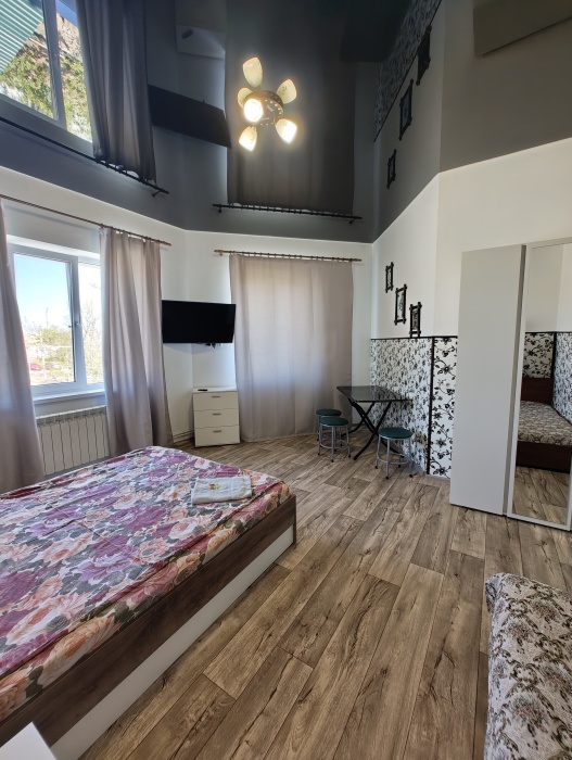 Однокомнатный номер со своей верандой в частном Гостевом доме«Гестия» в центре города, 300 метров от автовокзала, вся инфраструктура в пешей доступности (рынок, круглосуточные супермаркеты, торговый центр, общественный транспорт). До набережной 15-20 минут пешком или 3 остановки на общественном транспорте. Жилье находиться в частном доме с охраной и видеонаблюдением. Две бесплатные парковки в пределах 100 метров . Интернет, Холодная и горячая вода постоянно,в холодное время года всегда тепло благодаря автономному отоплению.