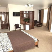 В гостевом доме 30 просторных номеров, отвечающих всем требованиям современной отельной индустрии. Все номера выполнены в современном стиле Модерн, укомплектованы качественной мебелью и необходимой техникой, и способны удовлетворить запросы самых требовательных гостей.