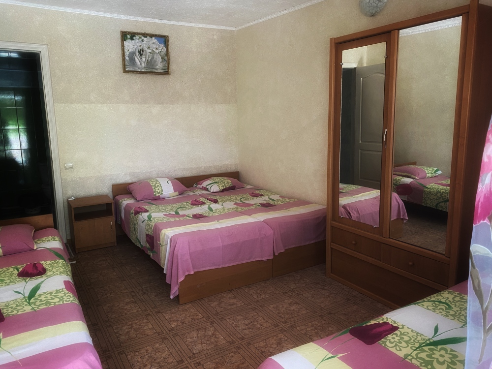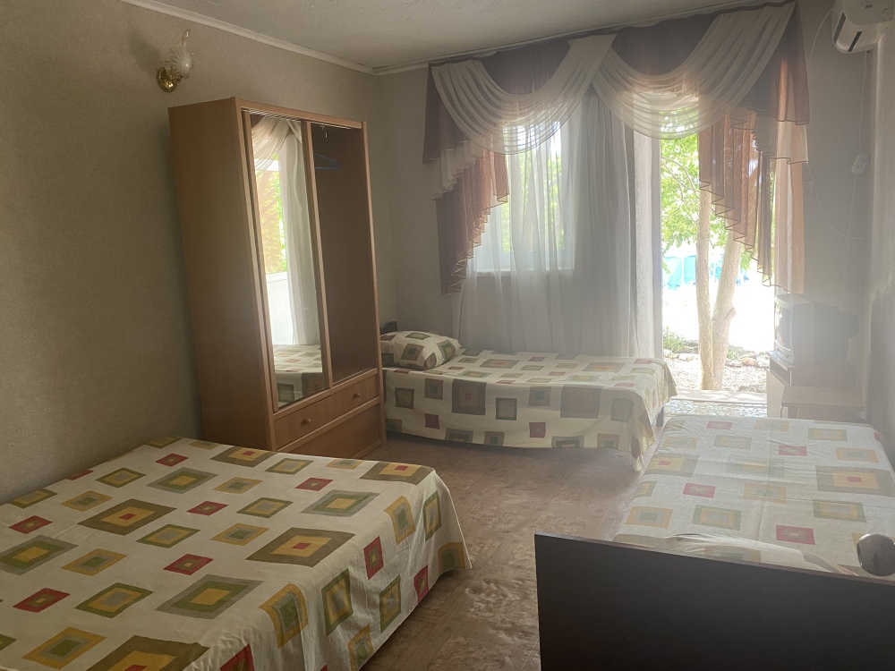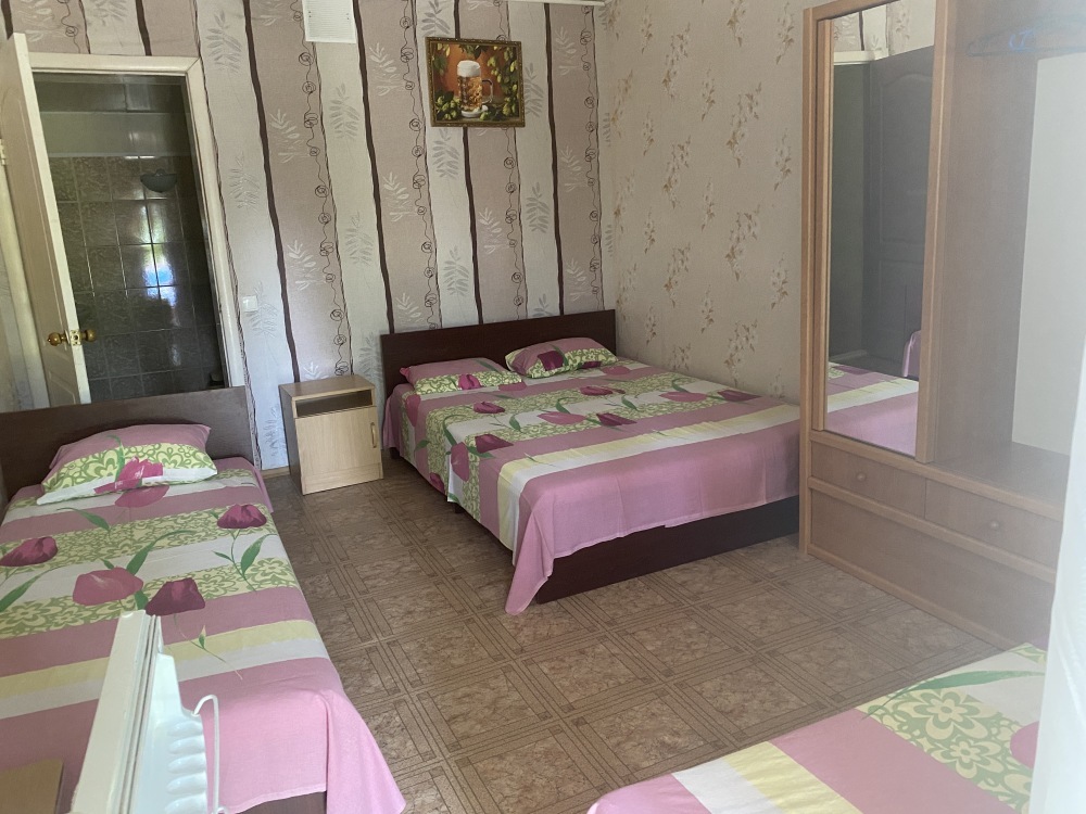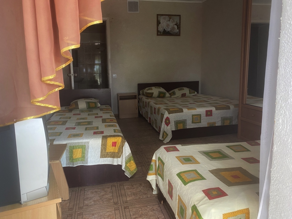 В наличии есть 2,3,4-местные номера с удобствами, кондиционерами, холодильником и телевизором (частично). Кухня на территории, мангал, услуги трансфера. Номера с видом на море, беседки, замечательная озеленённая территория.
