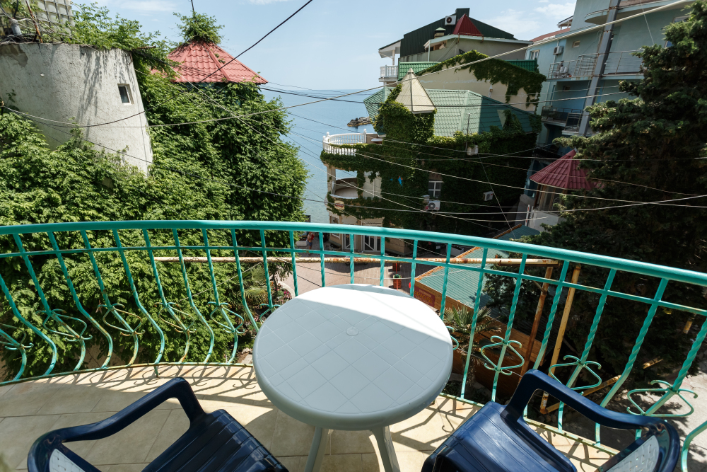 Гости могут забронировать номера категории Люкс. Из каждого номера неповторимо открывается панорамный вид на море. Во всех номерах есть кондиционер, чайник, холодильник, фен, тапочки, комплекты банных полотенец.