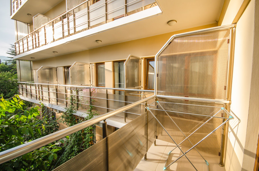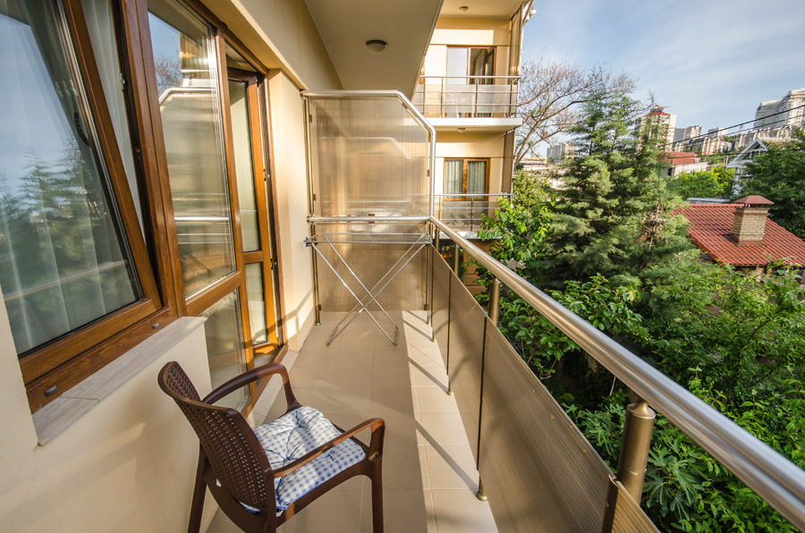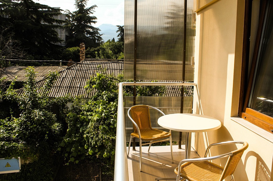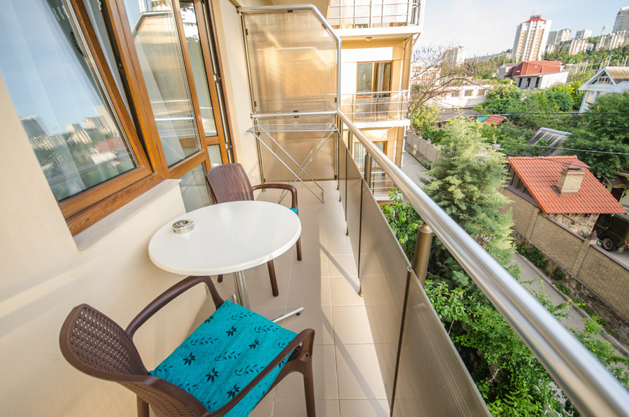 В каждой комнате есть ванная комната с душем, балкон со столиком и двумя креслами.