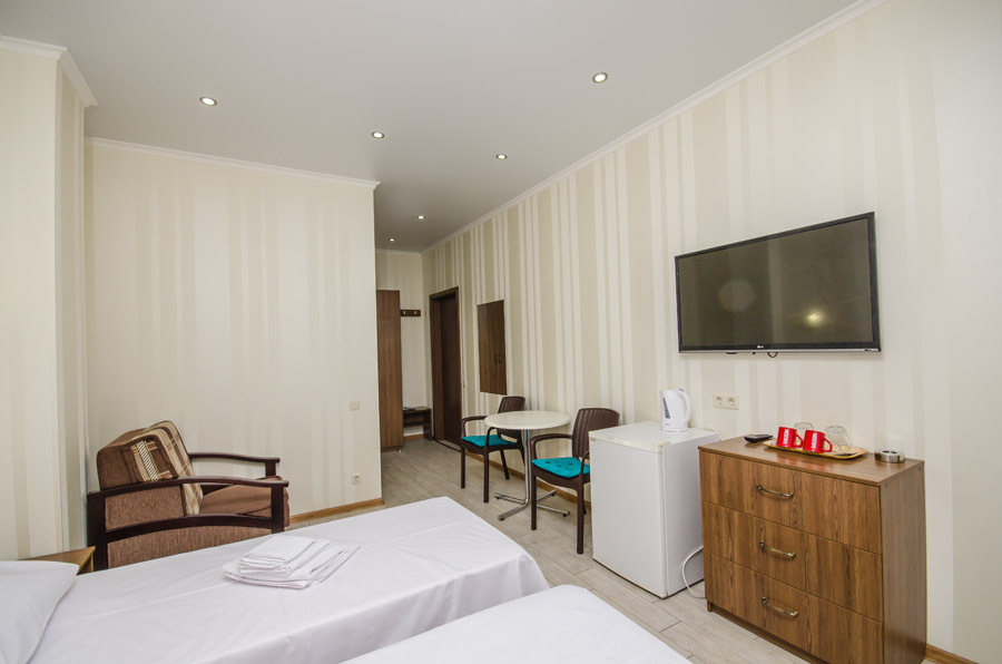 Все комнаты оборудованы двухспальными кроватями, кондиционерами, телевизорами с плоским экраном и кабельными каналами, холодильниками, электрочайниками, сушилками для белья.